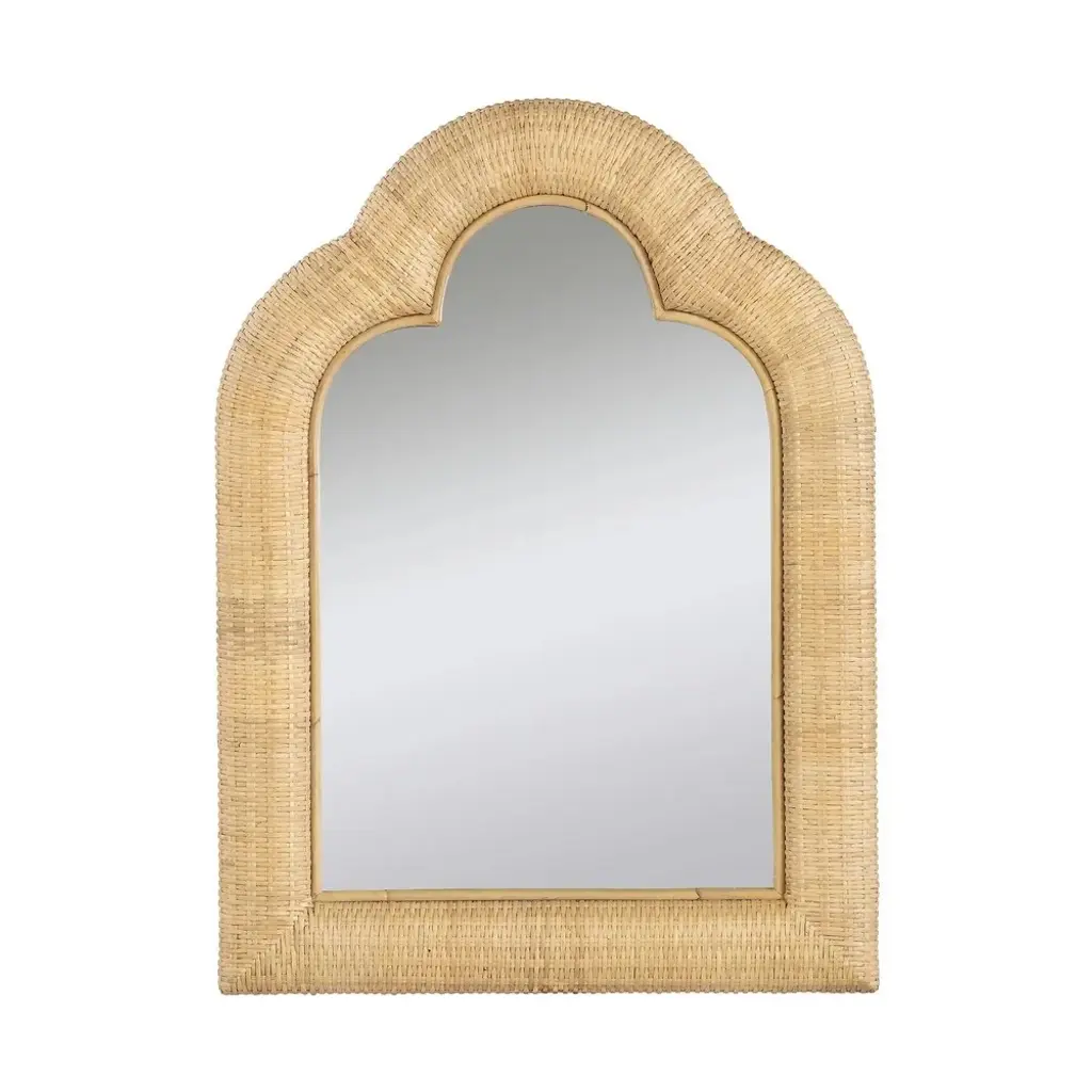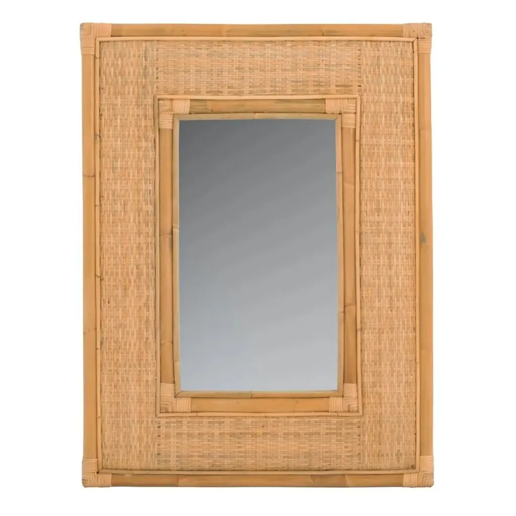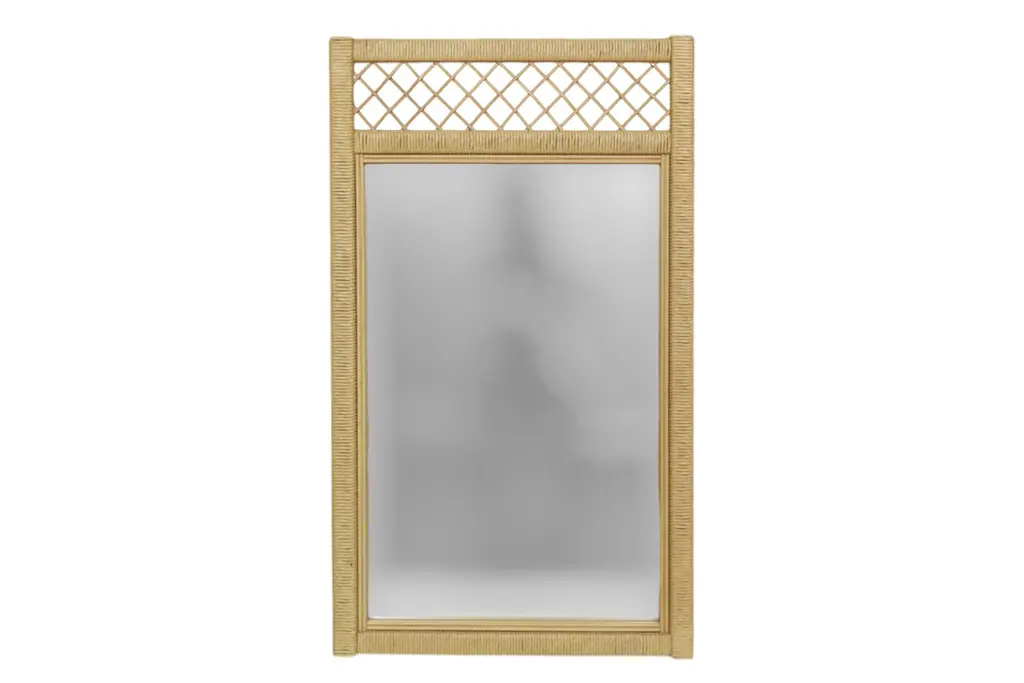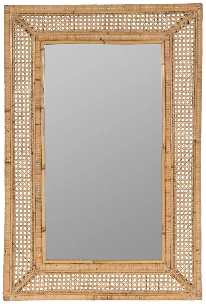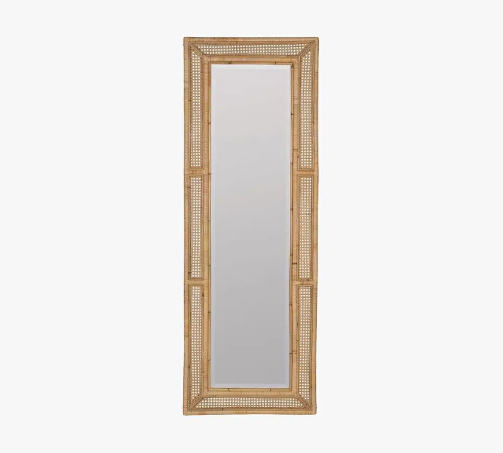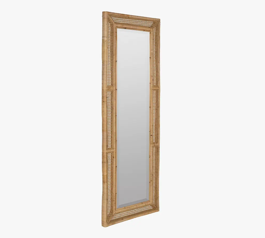 Woven and finished by hand, our floor mirror lends a look of rustic refinement to your interiors. Ash is framed in cane and detailed with airy rattan panels that infuse the tonal palette with texture. The natural materials beautifully set off the beveled mirror, providing the perfect complement to a country setting.
