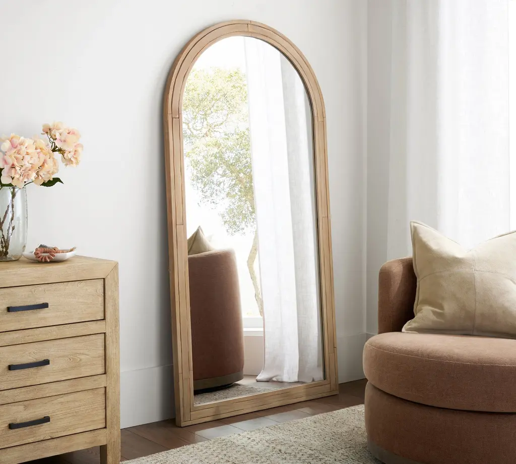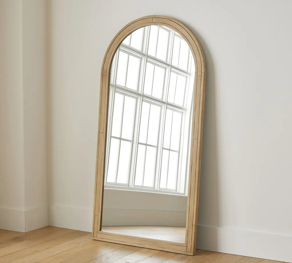 Bring height and light to your space with this handsome floor mirror. Inspired by the Irish countryside and the washed-wood tones of vintage gardening tools, it is perfect for rustic spaces. We love the gently arched top for an extra touch of drama and style.