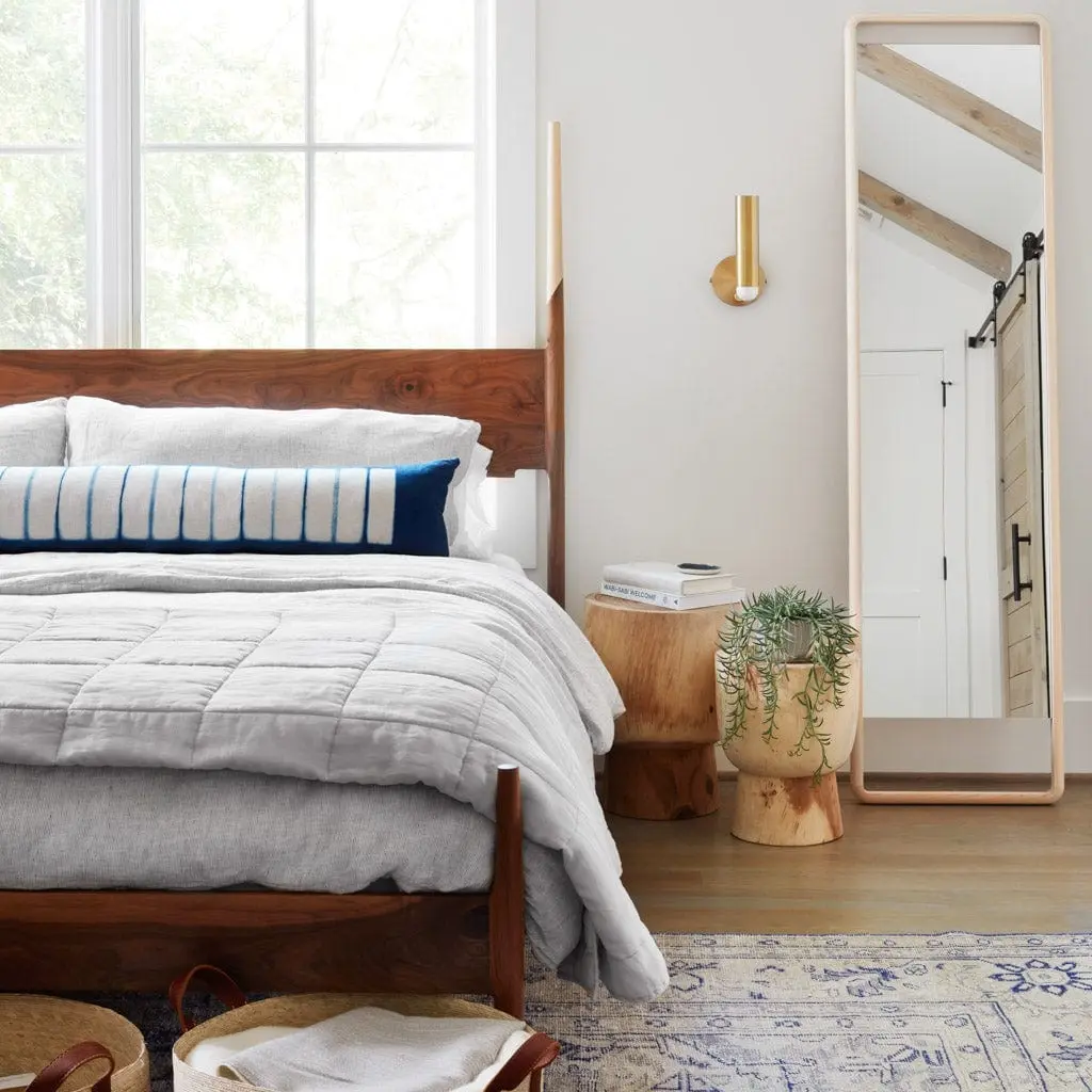 Effortless and subtle, yet still a total standout – there are so many reasons this floor mirror is the fairest of them all. Made from the highest-grade hinoki cypress, the frame’s light hue and clean lines allow the mirror to seamlessly blend into your space while also making its claim as a focal point. Perfect for an entry, bedroom, living space, or anywhere you want to add a bit of unexpected style.Handcrafted by a 4th generation workshop comprised of 33 artisans, each mirror takes over 10 days to complete. All made sustainably in a fair trade working environment.Note: Available in two sizes - small and standard.NOTE: Due to the size of this item, returns for a refund require a $65 total fee. Returns for store credit are always free.