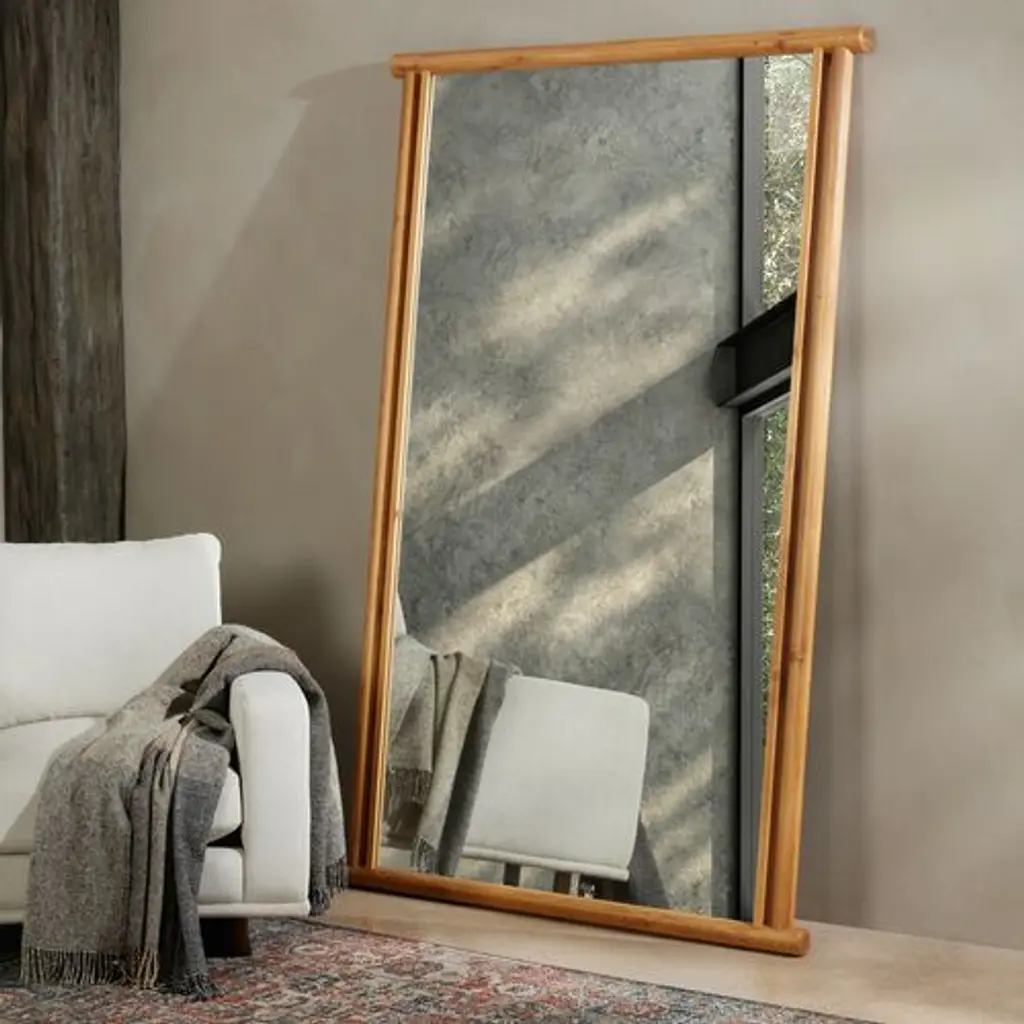 This mirror's substantial proportions—seven feet high and more than four feet wide—aren't the only reason it will command atttention. Crafted of durable, richly figured oak with a dowel construction, its streamlined frame is the ultimate in organic elegance.