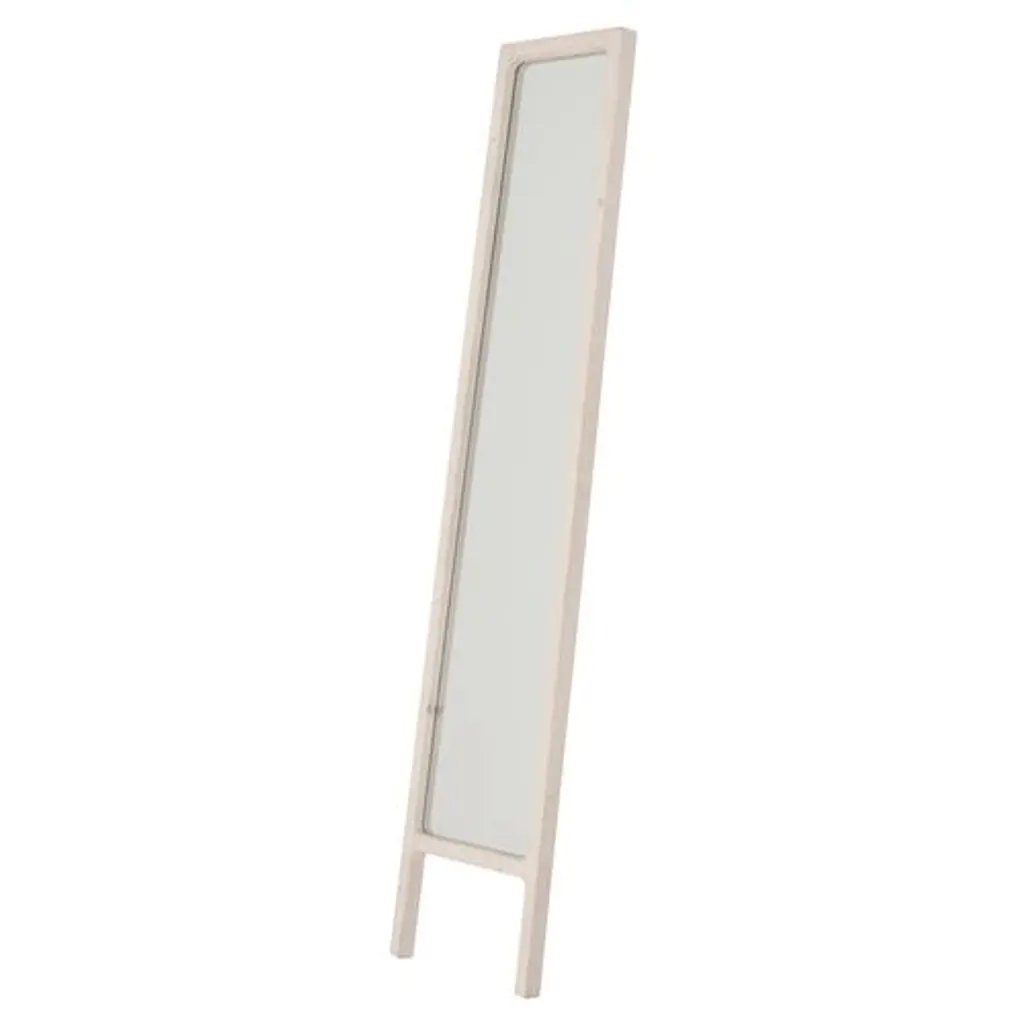 The tapered shape and rounded inner corners of this floor mirror's frame give it a contemporary freshness, while the whitewash finish shows off the organic beauty of the reclaimed pine.