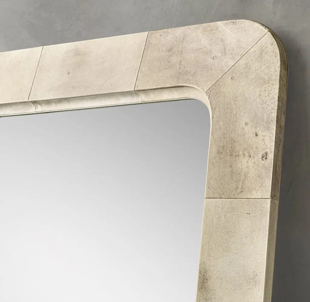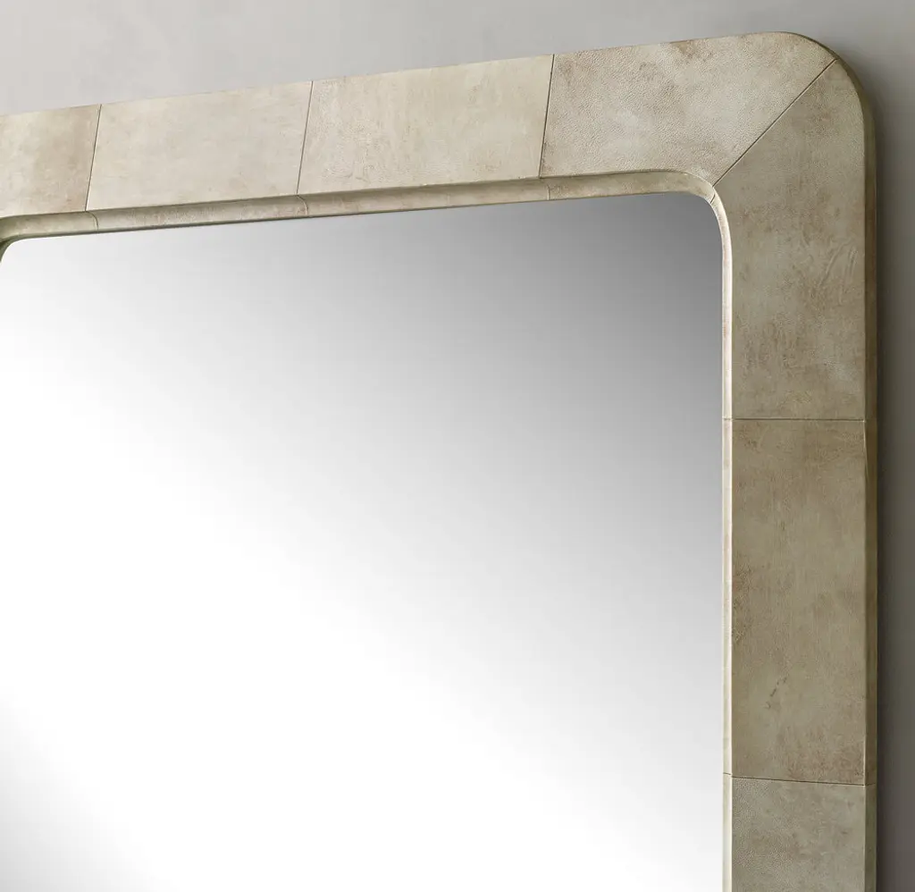 Recalling the distinctive 1930s style of celebrated French designer Jean-Michel Frank, our collection marries minimalist silhouettes and luxurious materials. Sheathed in natural, hand-pieced parchment, each mirror is a study in elegant refinement.