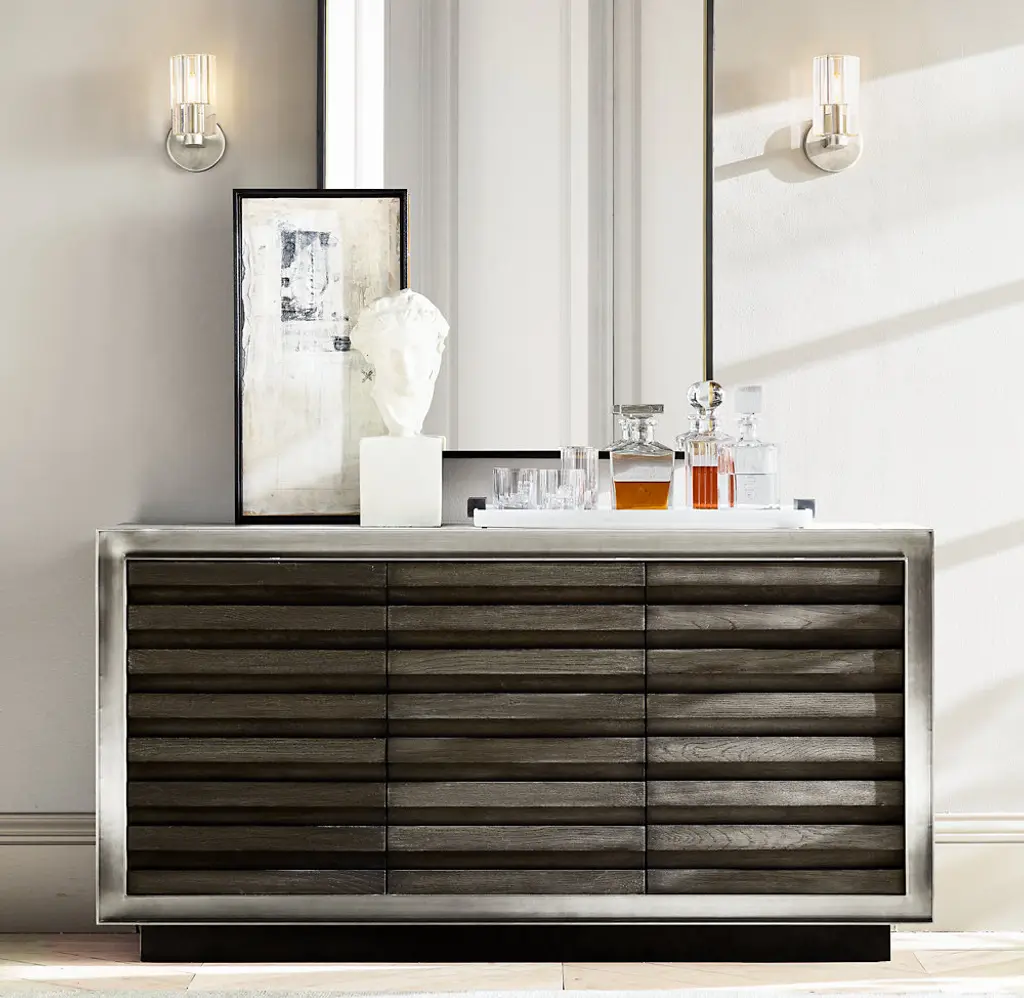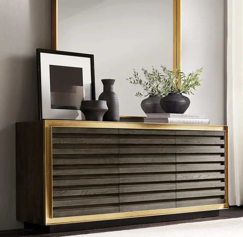 Pared-down in profile, our minimalist mirror, designed by John Birch of WYETH™, reimagines traditional dovetail joinery in solid metal. Impeccably crafted and finished by hand with a warm metallic patina, the slim, deeply inset frame evokes the crisp contours and restrained elegance of midcentury design.