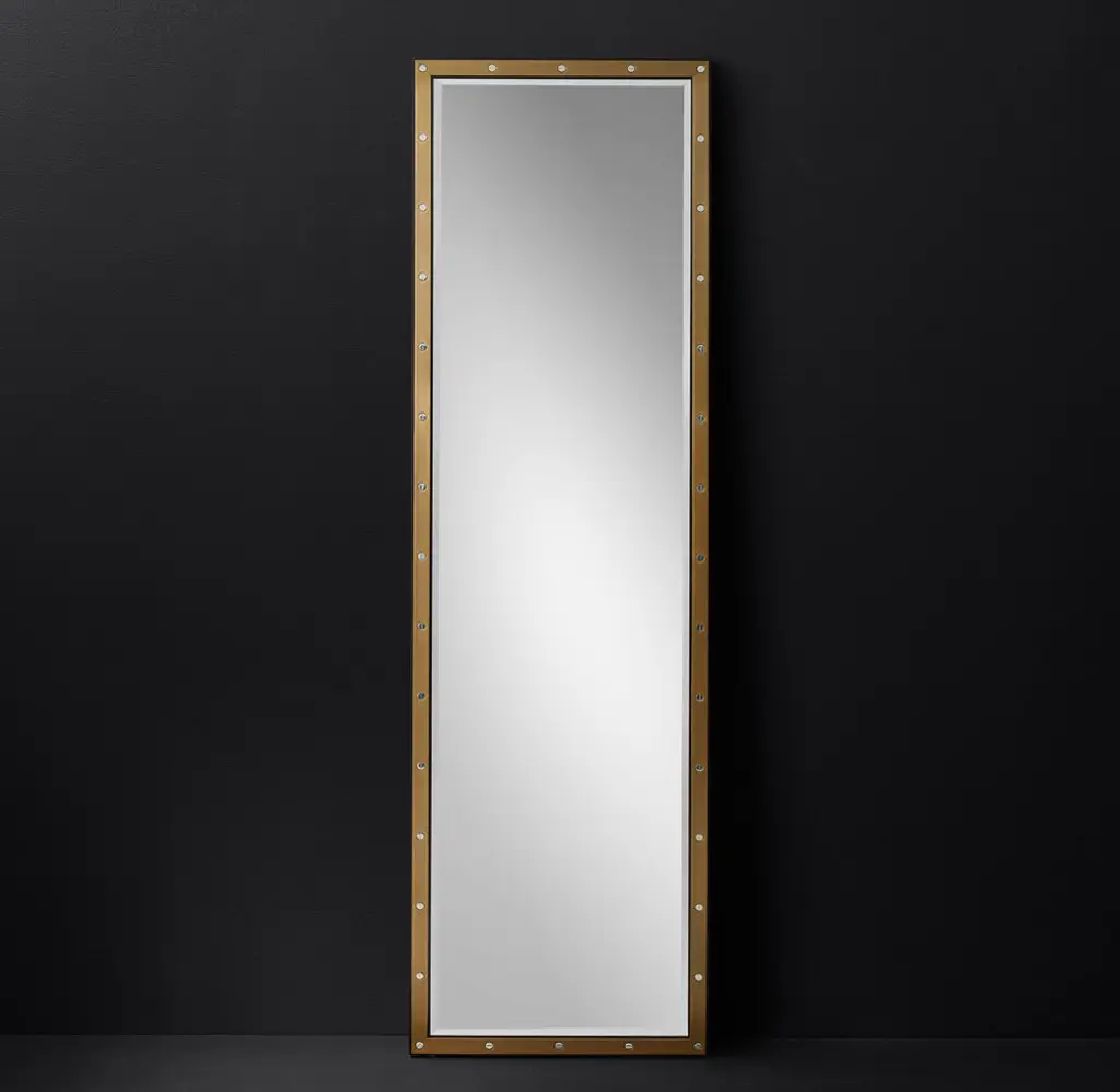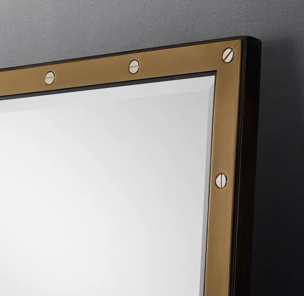 An industrial form with contemporary polish, the steel frame of our mirror is punctuated with contrasting screw heads, adding subtle ornament to the simple rectangular shape.
