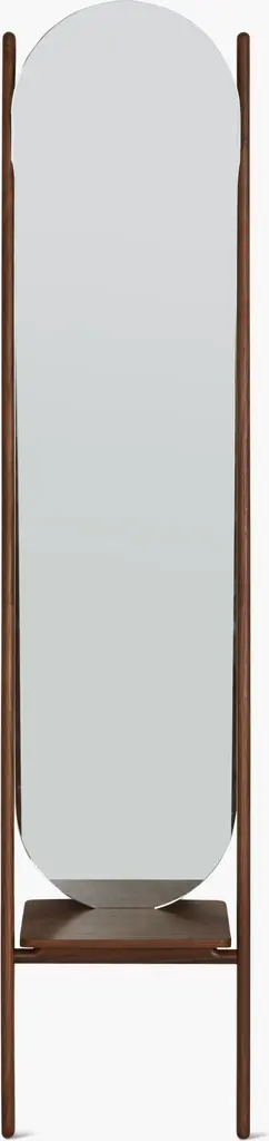 Solid walnut or ash dowel legs grip a radius edge mirror that is designed to lean confidently against the wall to capture all of you and your glorious outfit.