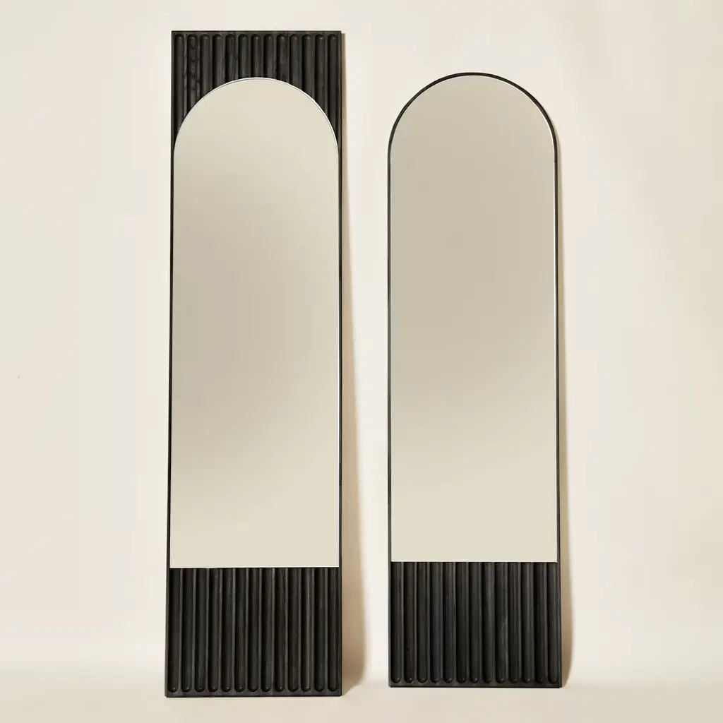 Tutto Sesto mirrors are part of the 2023 collection of contemporary solid wood furniture. Born from the dialogue between Dale Italia and Cono Studio, the range is defined by essential aesthetics, in tune with current trends without losing touch with the craftsmanship values of our Made in Italy. The mirrors stand out for the contrast between the lightness of the frame and the heaviness of the base. The milled pattern creates a decorative motif through plays of light and shadow.