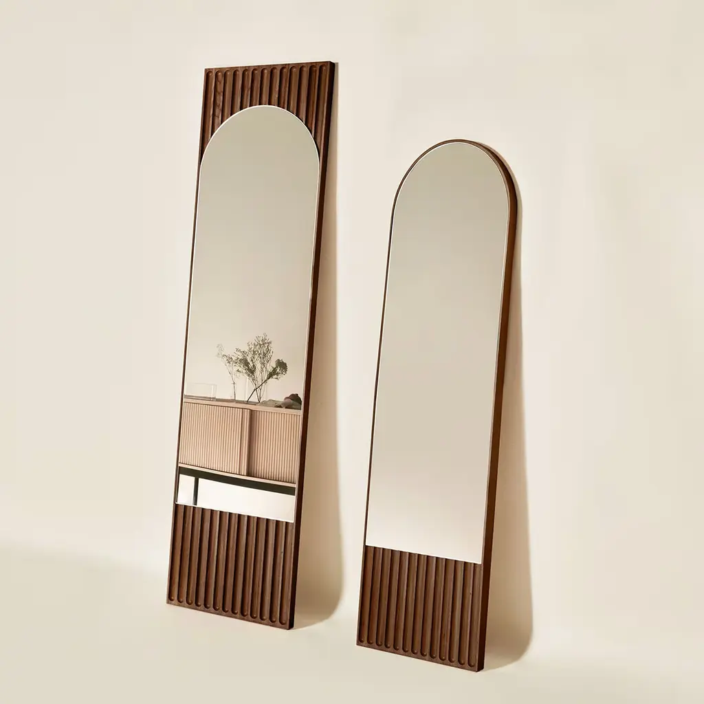 Tutto Sesto mirrors are part of the 2023 collection of contemporary solid wood furniture. Born from the dialogue between Dale Italia and Cono Studio, the range is defined by essential aesthetics, in tune with current trends without losing touch with the craftsmanship values of our Made in Italy. The mirrors stand out for the contrast between the lightness of the frame and the heaviness of the base. The milled pattern creates a decorative motif through plays of light and shadow.