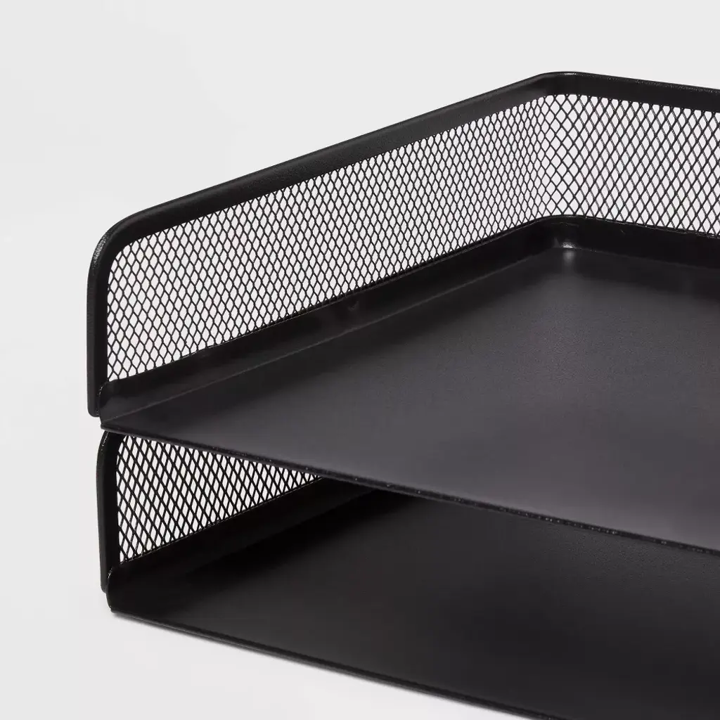 Mesh Stacking Letter Tray With Wide Side Opening Black - Brightroom™