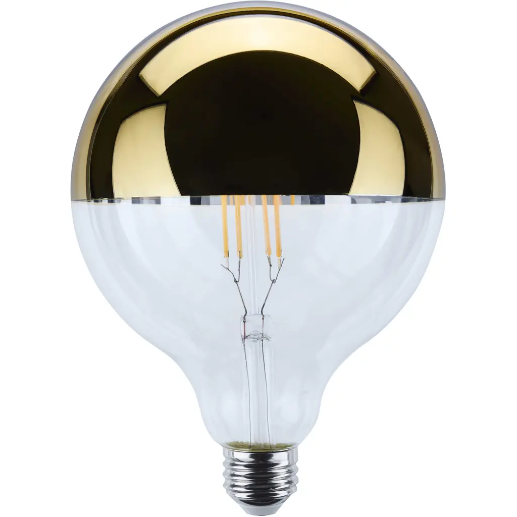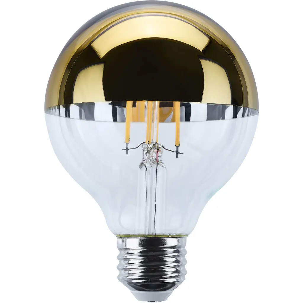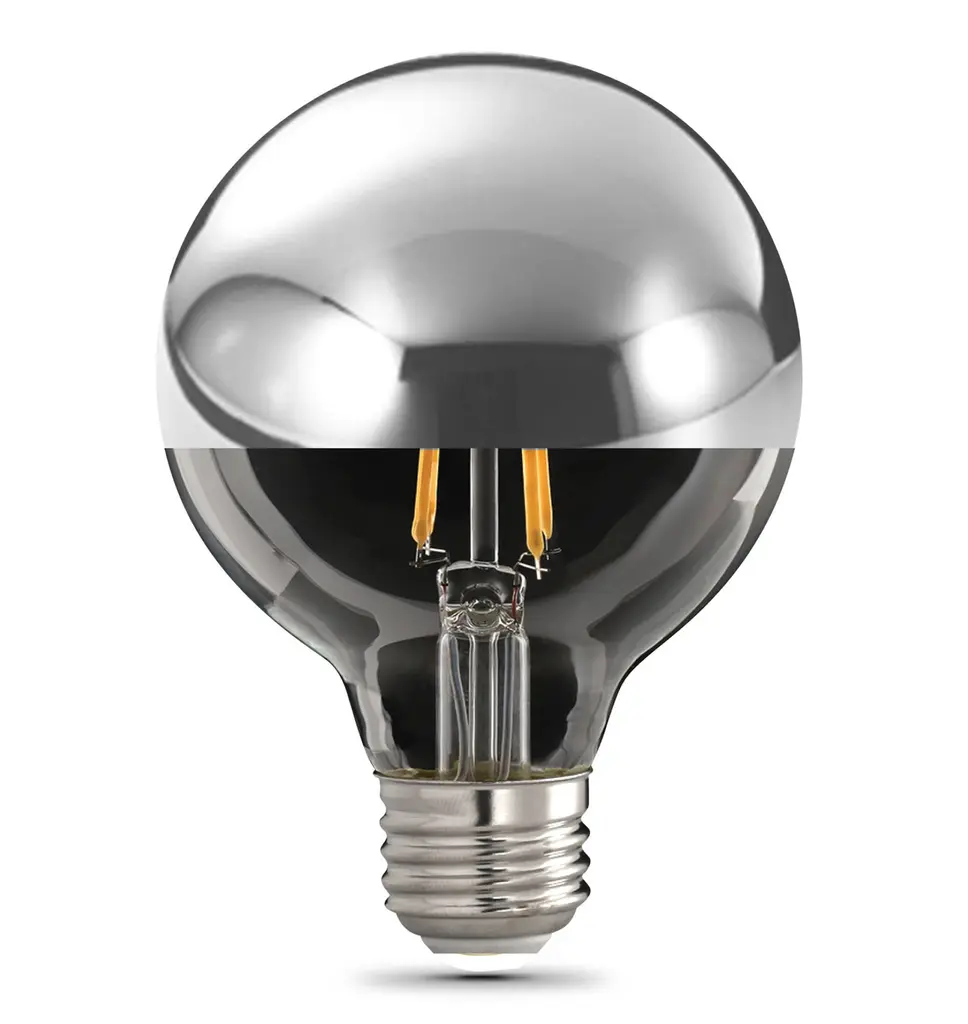 Add a touch of elegance to any room with this decorative half-mirror globe bulb. Designed to be the perfect base for overhead fixtures, pendants, and more. The mirrored chrome top reflects light up toward the fixture cutting the overhead glare and creating a soft ambient glow.