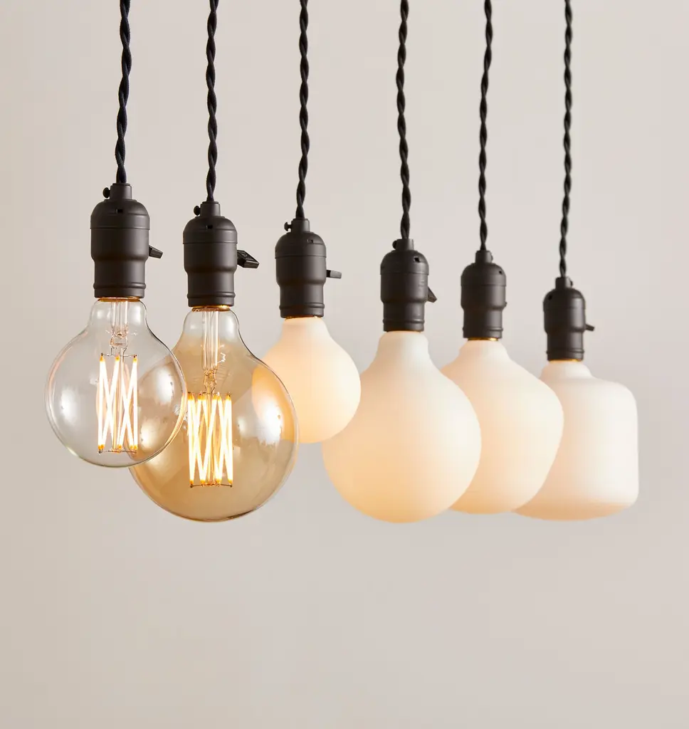 With a handcrafted, one-of-a-kind shape, this LED Tala bulb offers a change from traditional industrial-style bulbs. The interesting shape provides a luminous glow, breaking up space and color with calm orbs of white light. Each bulb is individually mouth-blown, sandblasted, and designed by Tala, a British lighting brand dedicated to sustainability and unique design. For every 200 Tala bulbs sold, 10 trees are planted.
