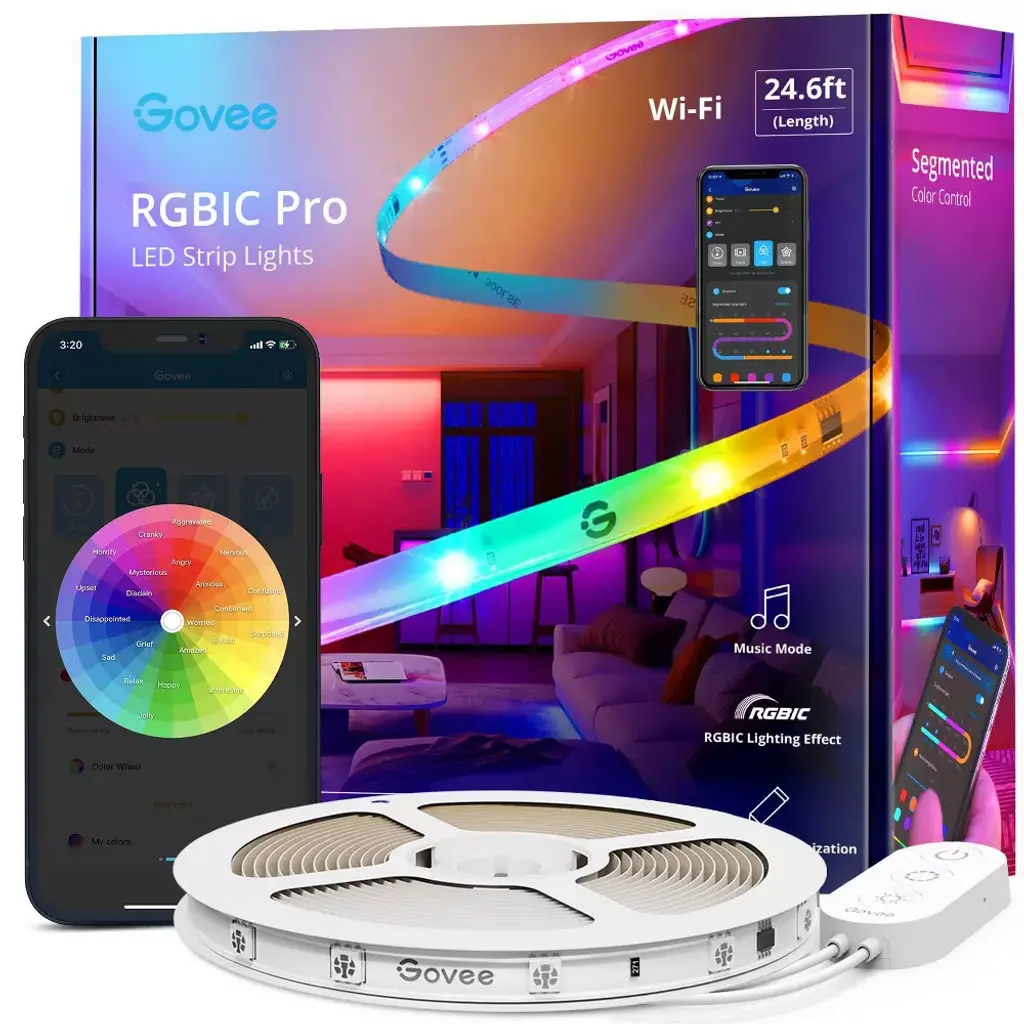 Govee Rgbic Pro 24.6' Led Strip Lights: Smartphone App Controlled Neon-style Lights