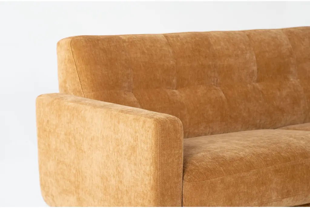 Allie Buttercup Yellow Fabric 4 Piece Sofa Loveseat Armchair & Rectangle Ottoman | Tufted