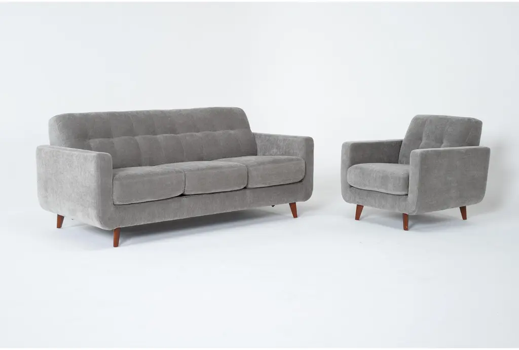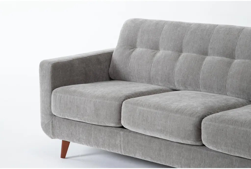 Get a chic retro look for way less with our fun, fresh Allie collection. Mid-century modern features - like clean curves, grid-tufted tight backs and splayed beech wood legs that detach for easy delivery - will transform your living room into the ultimate lounge. Offered at an outstanding value, these designs don't sacrifice on style or quality, thanks to impeccably tailored, solidly constructed details and durable, low-maintenance fabric. You even have a choice of multiple colors.