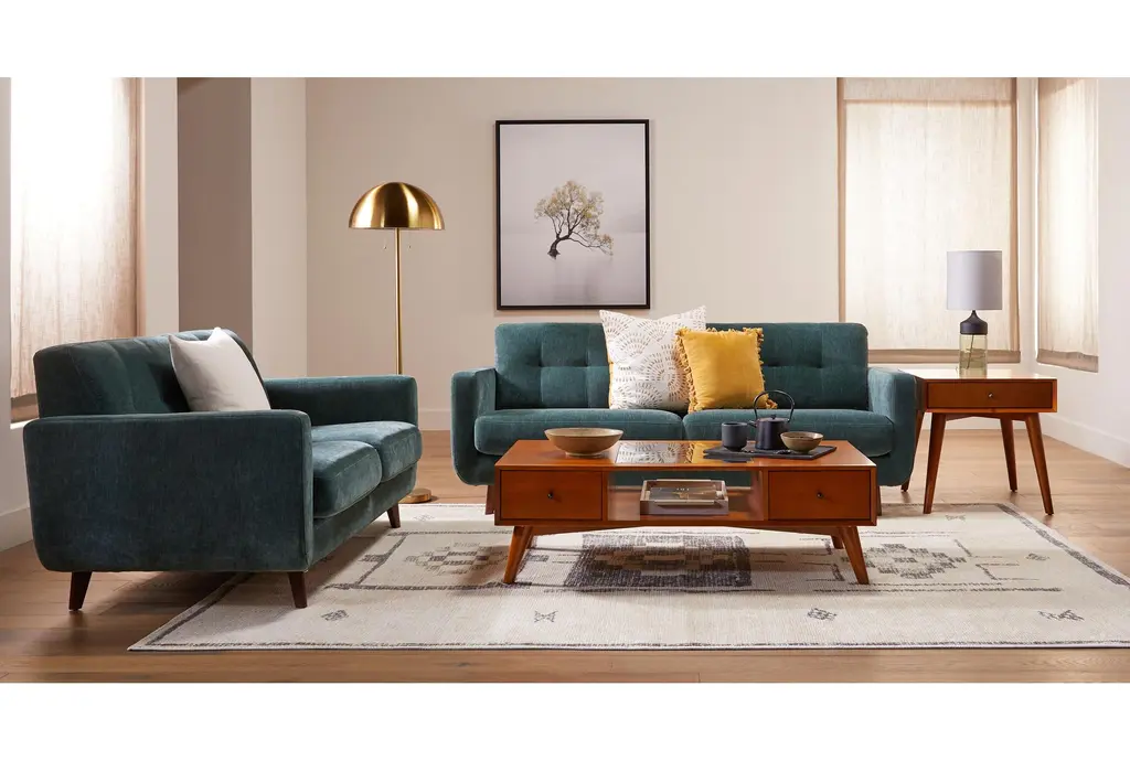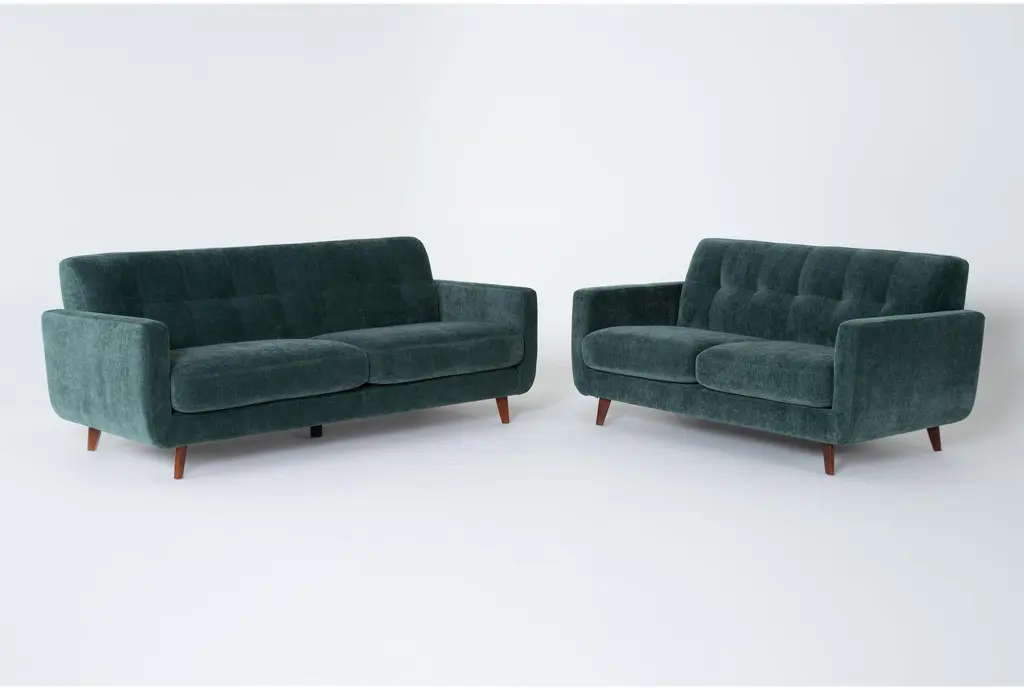 Allie Midnight Jade Green Fabric 2 Piece Sofa & Loveseat | Tufted