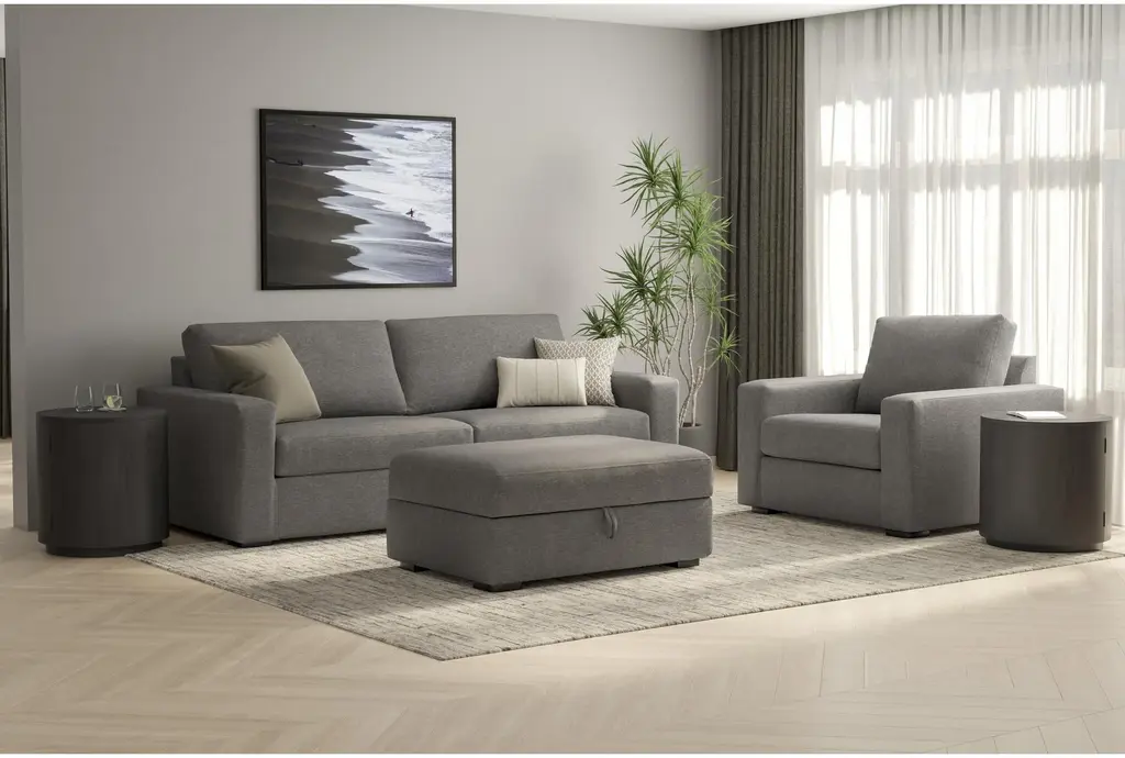 Araceli Ii Pewter Grey Fabric 3 Piece 95" Queen Memory Foam Sleeper Sofa Bed Oversized Armchair & Storage Ottoman Set
