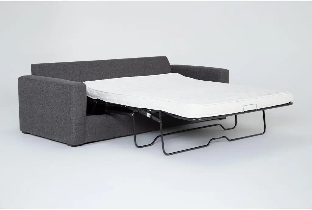 The Araceli II Pewter Grey Fabric 3 Piece 95" Queen Memory Foam Sleeper Sofa Bed Oversized Arm Chair & Storage Ottoman Set combines style and functionality for your living room. This modern set, upholstered in 100% polyester fabric, includes a sofa, armchair, and storage ottoman, making it perfect for any living space. Designed for both comfort and practicality, the queen memory foam sleeper provides a restful night's sleep, while the storage ottoman offers additional space for your essentials.