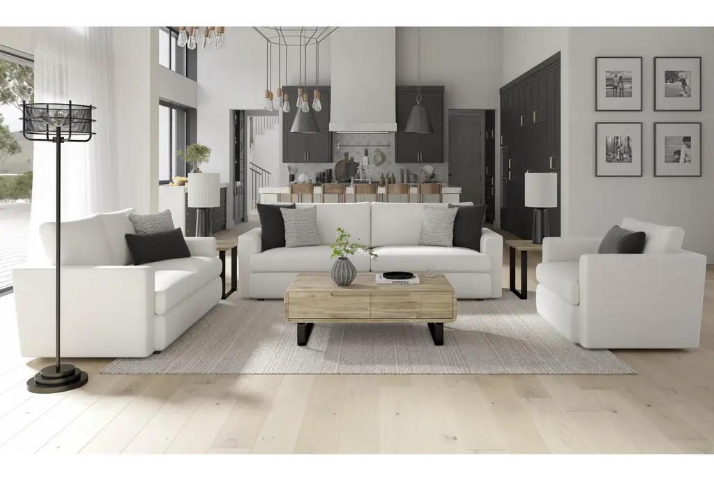 Elevate your living room with the Basil Porcelain White Fabric 3 Piece Queen Memory Foam Sleeper Sofa Bed Loveseat & Arm Chair Set. This modern set features a rich Bear Hug Porcelain color and is upholstered in 100% polyester fabric, offering both style and durability. The queen memory foam sleeper sofa ensures maximum comfort for overnight guests, while the loveseat and arm chair provide ample seating for everyday relaxation.