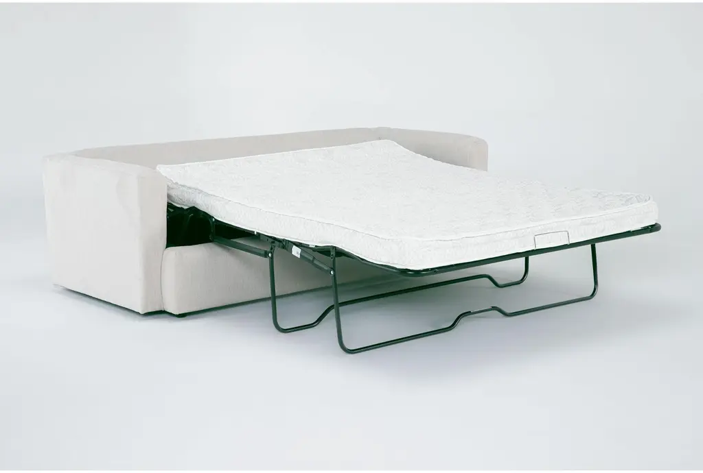 Basil Porcelain White Fabric 3 Piece Queen Memory Foam Sleeper Sofa Bed Loveseat & Armchair Set