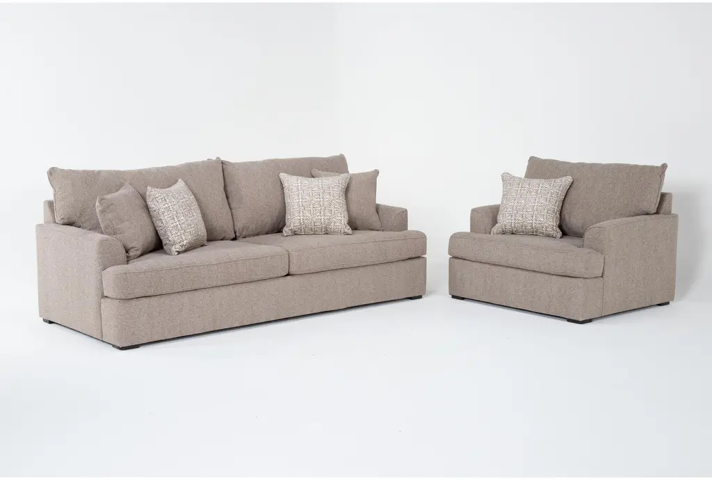 Belinha Ii Taupe Beige Fabric 2 Piece Queen Memory Foam Sleeper Sofa Bed & Armchair Set | Loose Reversible Back