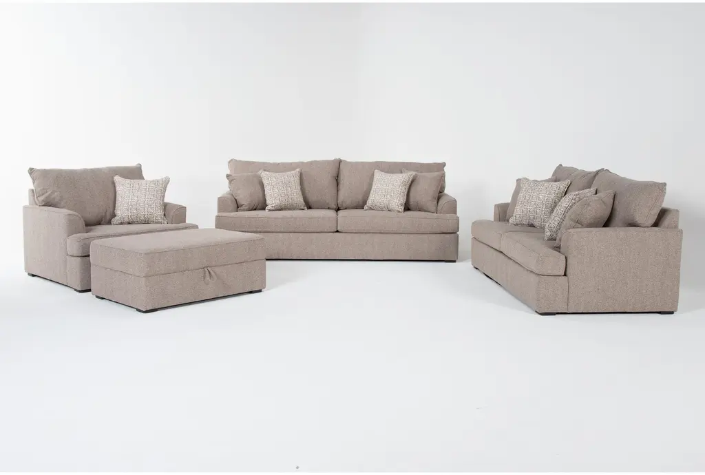 Belinha Ii Taupe Beige Fabric 3 Piece Queen Memory Foam Sleeper Sofa Bed Condo Sofa & Armchair Set | Loose Reversible Back