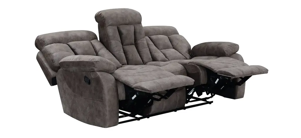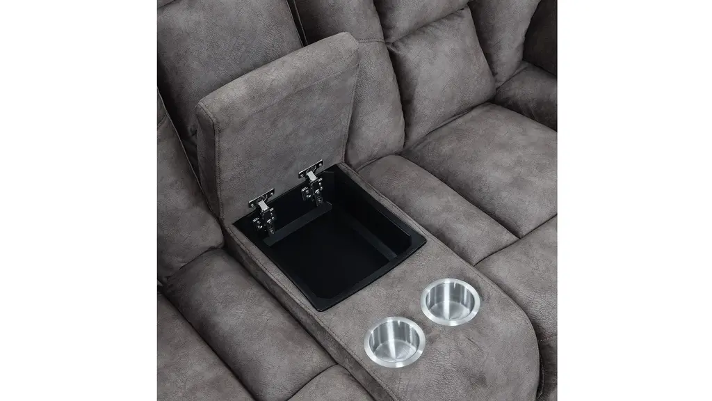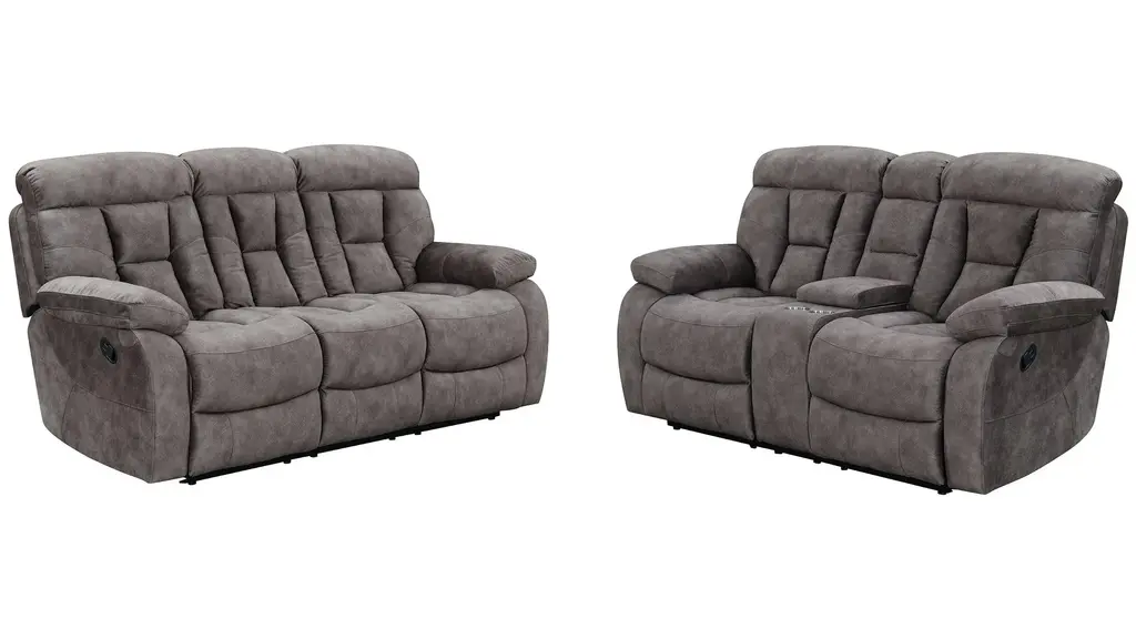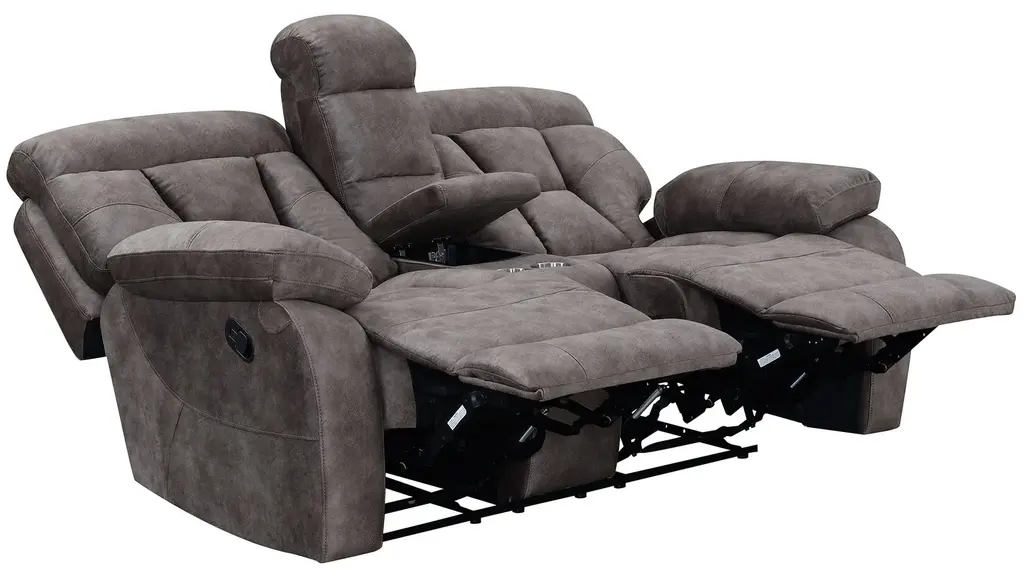 Reclining comfort is yours with the Bogata Living Room Set. Comfortable seating is ensured with the pocketed coil seat springs and memory gel foam seat cushions. The center console of the loveseat features lift top storage for remotes or other items and two cup holders. The manually operated recliners on each end provide plush and comfy seating. The brown colored upholstery is soft to the touch and easy to clean so you can relax and enjoy. Set includes sofa and loveseat