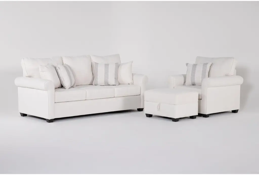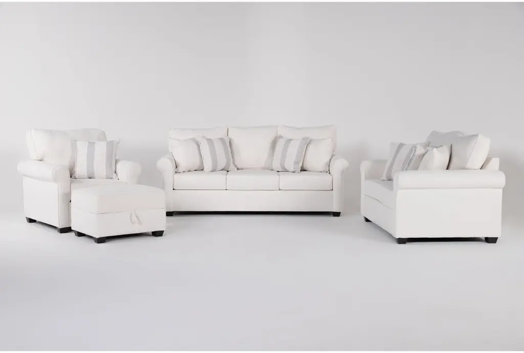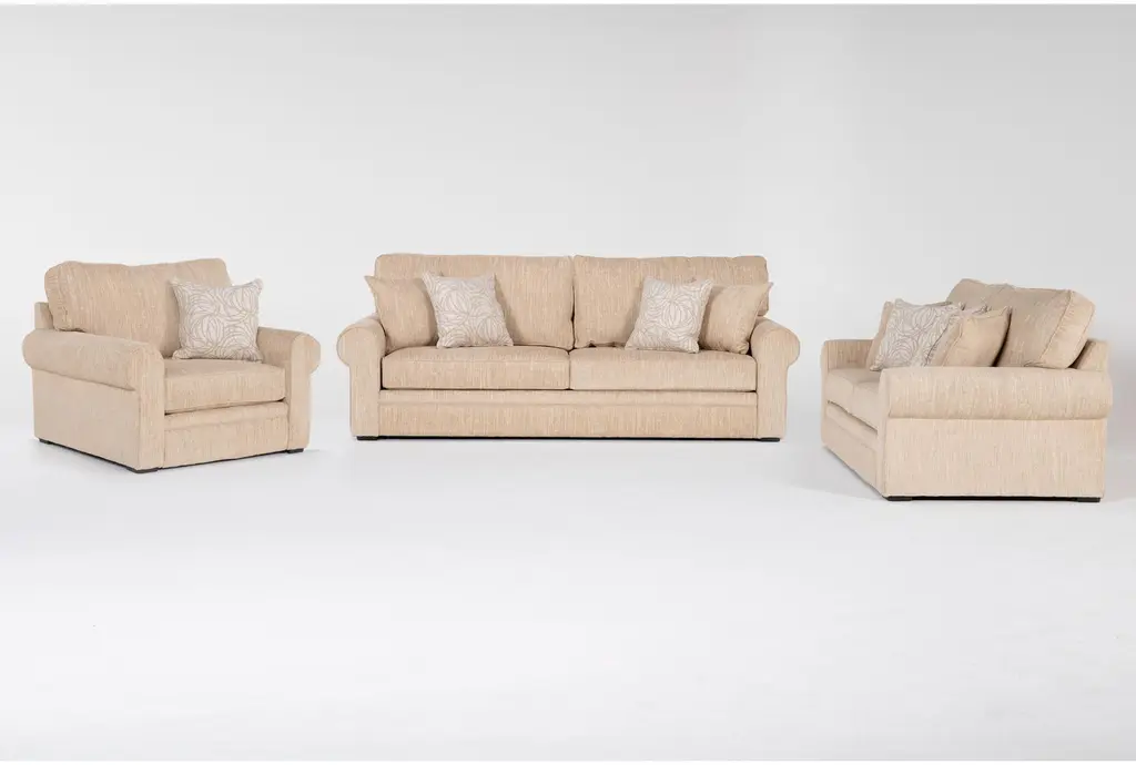 The timeless beauty of traditional style is on full display with our Carina collection. Designed and made exclusively by Living Spaces, this living room set possesses the utmost quality and attention to detail. Classic roll arms set the stage for graceful silhouettes, which are elevated by luxuriously deep seating and 100% polyester chenille upholstery in two chic colors. Loose, reversible cushions ensure longevity, so you can enjoy lounging for years to come.