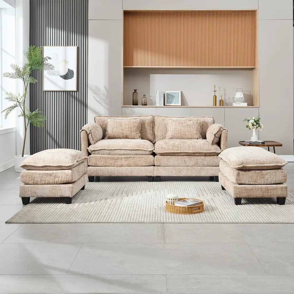 Introducing the Carina Wicker Beige Fabric 4 Piece Queen Memory Foam Sleeper Sofa Bed Condo Sofa Arm Chair & Ottoman Set, a perfect blend of traditional and casual styles. This versatile set, featuring a queen-sized sleeper sofa, arm chair, and ottoman, is designed to provide comfort and functionality for any living space. Crafted from 100% polyester fabric in a natural wicker tan color, it offers a timeless look that complements any decor.