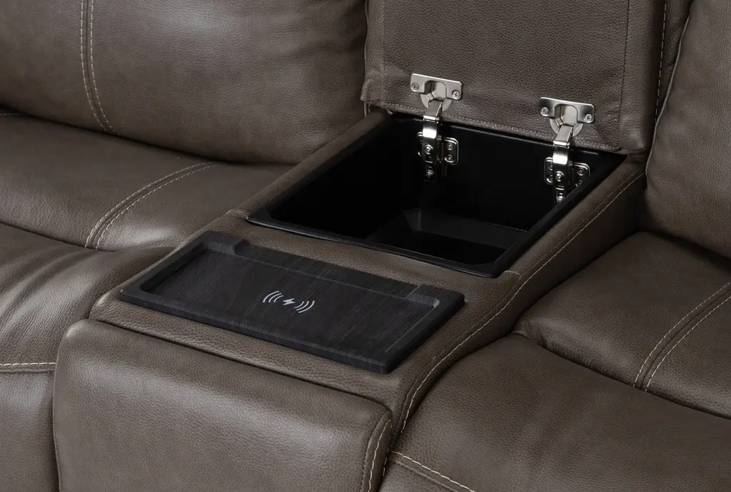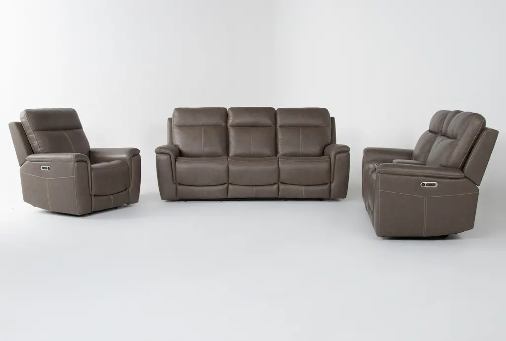 Dylan Dark Taupe Leather 3 Piece Flexsteel Power Zero Gravity Reclining Living Room Set With Sofa Console Loveseat And Recliner