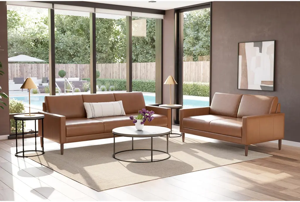 Ian Saddle Brown Leather 2 Piece Sofa & Loveseat Set