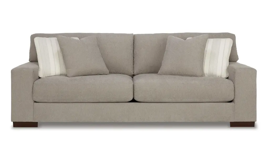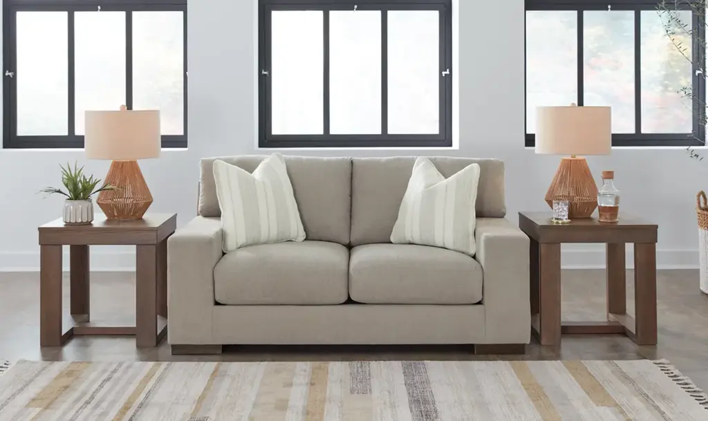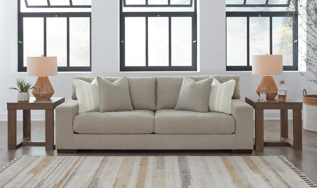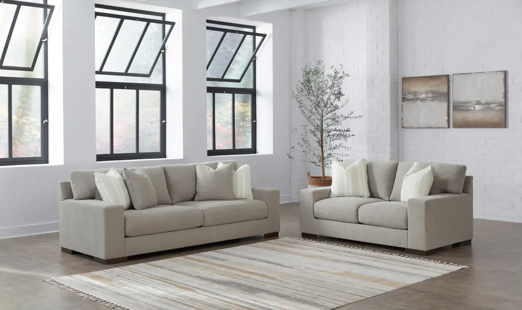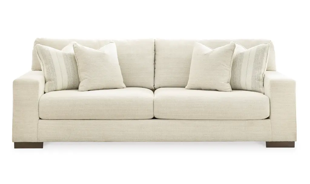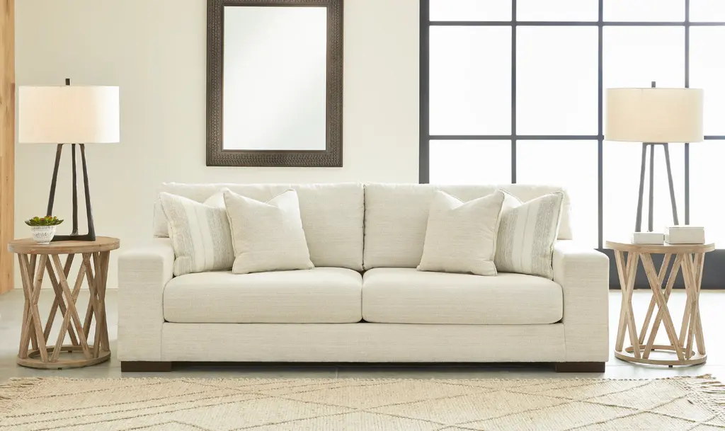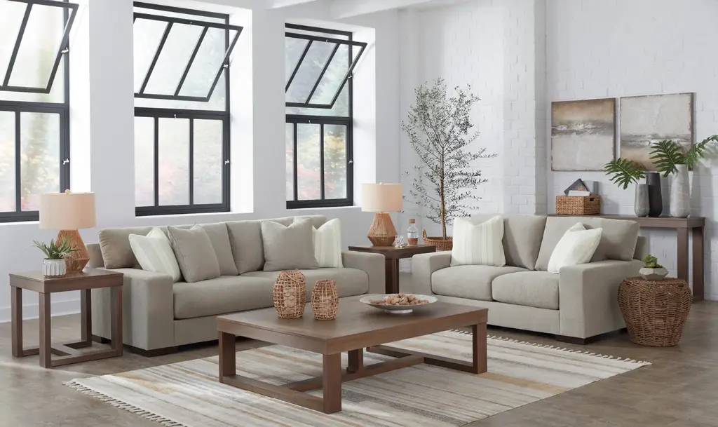 Introducing the Maggie Fabric Living Room Set with Reversible Cushions – where classic comfort meets modern sophistication. With its sleek, minimalistic design and structured silhouette, this Living Room Set effortlessly adds a touch of elegance to your living room. Crafted with a corner-blocked frame, it ensures durability and stability, promising years of reliable use. What sets the Maggie Living Room Set apart are its reversible cushions, designed for ultimate convenience and longevity. The high-resiliency foam cushions, wrapped in thick poly fiber, provide exceptional comfort, allowing you to sink in and relax after a long day. Whether you're unwinding solo or entertaining guests, this Living Room Set offers the perfect spot to lounge and enjoy life's moments. Included with the Living Room Set are accent pillows, featuring a feather-fiber fill that adds a luxurious touch. The light neutral polyester upholstery not only enhances the overall aesthetic but also makes it versatile enough to blend seamlessly into any casual or contemporary space. With endless style possibilities, the Maggie Living Room Set is more than just a piece of furniture; it's a statement of timeless design and exceptional quality. Upgrade your living space with this exquisite Living Room Set and indulge in the perfect blend of comfort and style. Experience the joy of relaxation and make a lasting impression on your guests with this remarkable addition to your home.