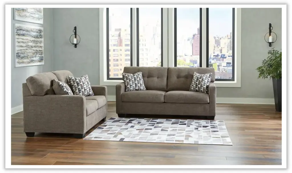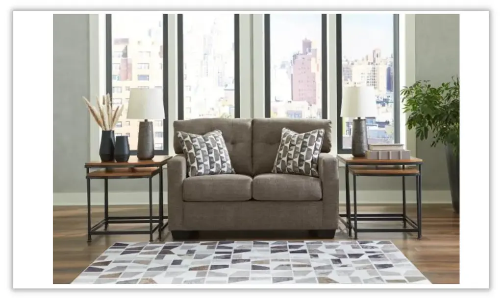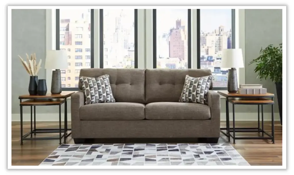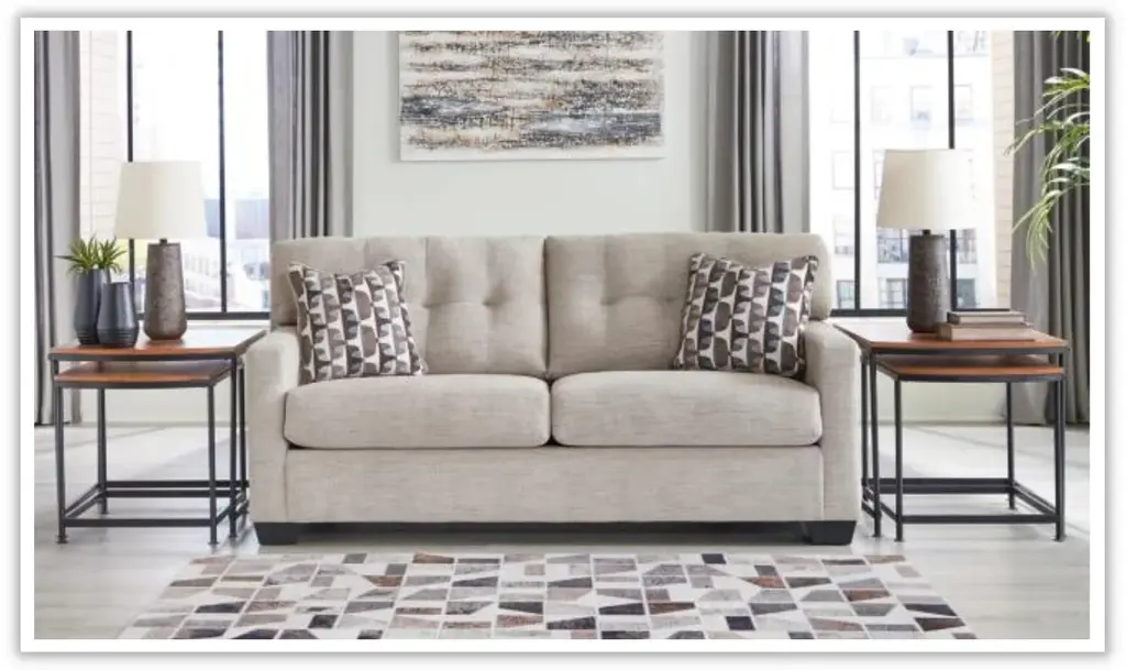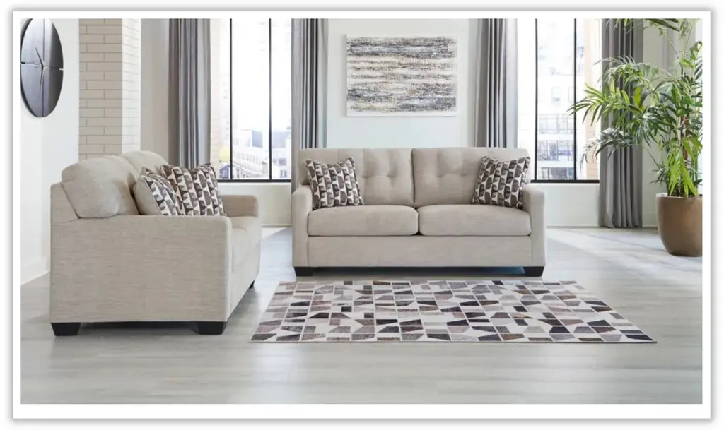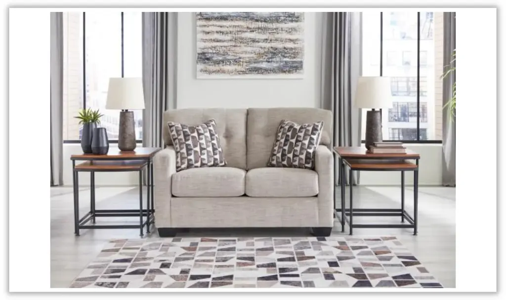 Introducing the Modern Heritage Mahoney fabric upholstered living room set with track arm by Jennifer Furniture – a haven of timeless comfort reimagined to elevate your living experience. Crafted to seamlessly enhance a variety of spaces, this living room set extends a warm invitation to embrace approachable and everyday style. The skillful fusion of classic details and contemporary structure makes it a captivating ensemble that effortlessly bridges the gap between tradition and modernity. Indulge in the art of comfort through the Mahoney sofa and loveseat's tufted back, a hallmark of enduring design that adds depth and character to the overall aesthetic. The contemporary structure enhances the pieces, infusing them with a sense of current sophistication. Enveloped in satisfyingly soft and multi-hued upholstery, the Mahoney Living Room Set offers a cozy retreat that exudes relaxation. Its smartly designed form ensures a harmonious balance between style and comfort, creating an oasis of tranquility in your living space. Elevate your decor with the Mahoney Living Room Set in Beige – a testament to both classic elegance and modern sensibilities. Whether it's intimate moments of togetherness or a solo escape into comfort, this living room set promises an exceptional blend of style and relaxation that enriches every corner of your home.
