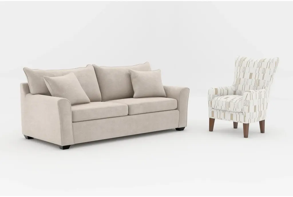 The Stark Dark Grey Fabric Sofa & Light Grey Fabric Swivel Arm Chair bring comfort and style to your living room. The contemporary design features a firm comfort level, and the pieces include a sofa and a chair. This set ensures durability with its combination of hardwood, engineered wood, foam, and fabric.