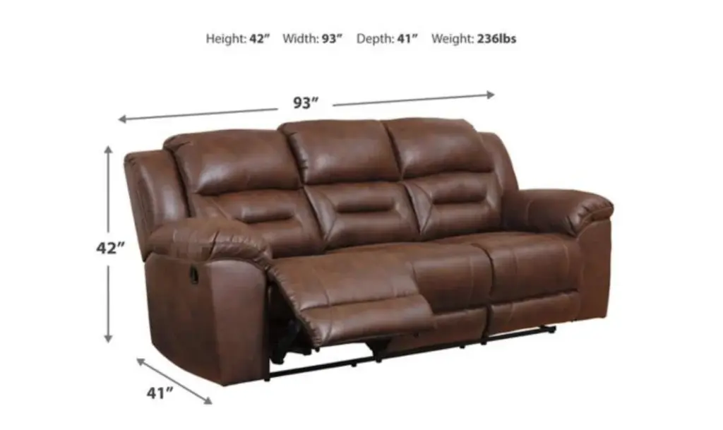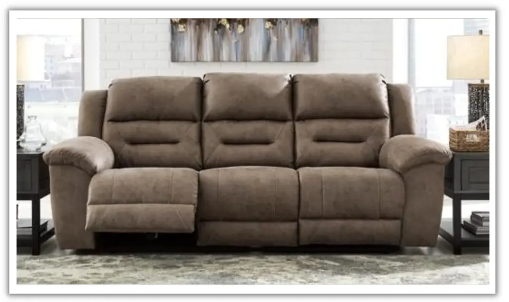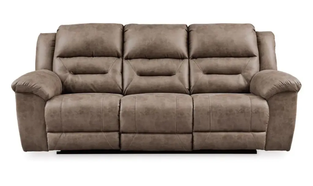 A wonderful combination of comfort and design for your house is the Stoneland Power Reclining Leather Living Room Set. This set is an example of quality and utility, designed for people who value the comfortable feel of cloth and the elegant appearance of leather. Long-term satisfaction is guaranteed thanks to the sturdy, corner-blocked structure and metal-reinforced seating. Although the central seat is stationary to allow for a variety of seating configurations, the dual-sided recliner allows for customized comfort. Comfort and relaxation without compromising are guaranteed with channel-stitched back cushions that offer outstanding lumbar support. You may relax with more convenience because to the tab pull reclining motion. Family areas benefit greatly from the high-performance padded imitation leather upholstery, which is easy to maintain and clean.