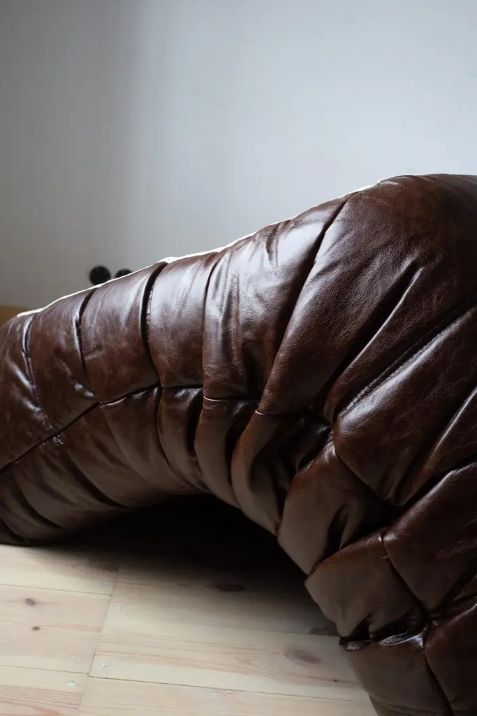 Togo Living Room Set In Dark Brown Shiny Leather By Michel Ducaroy For Ligne Roset, Set Of 5