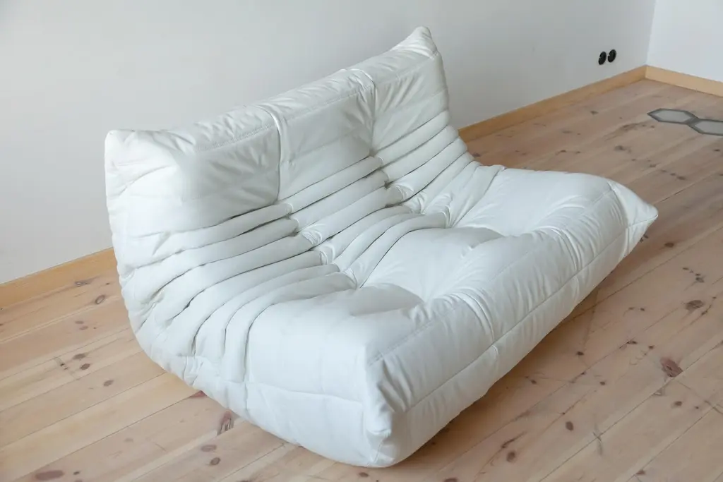 Togo Living Room Set In White Leather By Michel Ducaroy For Ligne Roset, Set Of 5