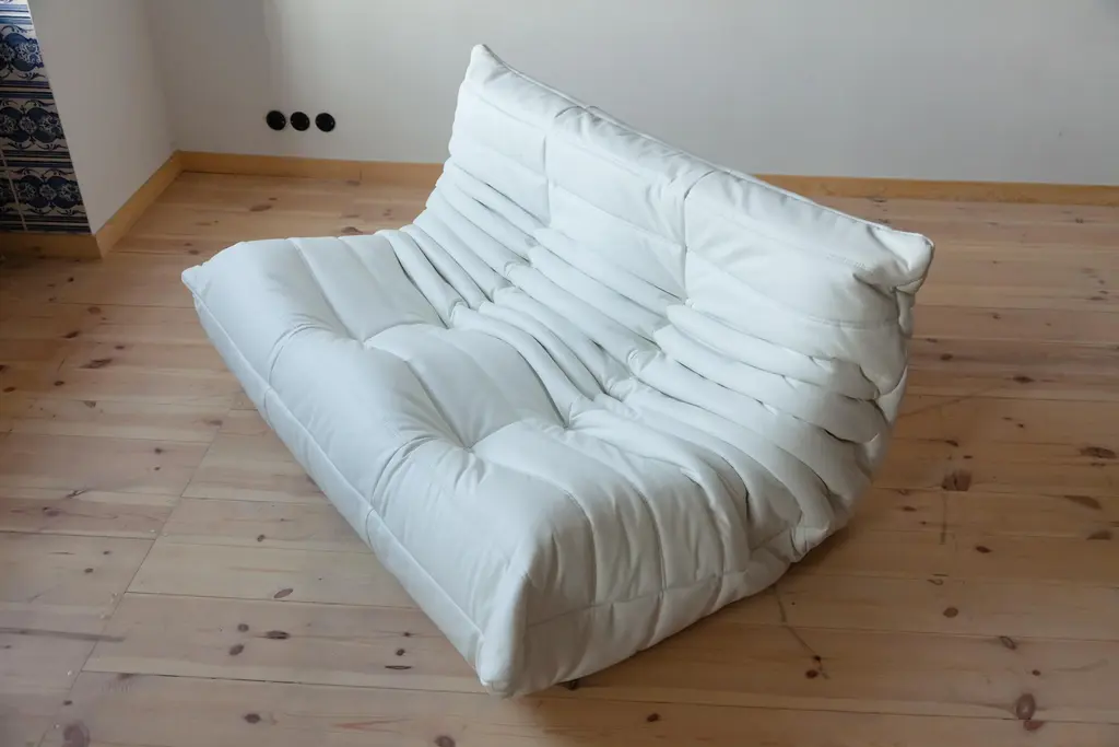 This Togo has been reupholstered with new foam and high-quality new fabric, keeping its inner structure giving the item its classic form Kindly note the Following regarding this listing - In the case a natural material is used for upholstery, there might be variations in the dye or colour hue. The material used for reupholstery is not original Ligne Roset - As this Togo is reupholstered on demand, the manufacturing time will be between 3-4 weeks - When Togos are reupholstered the vendor is not permitted to reaffix the original label - All Togo measurements for reference: 3-seater Height: 70 cm / Seat Height 38 cm / Width 172 cm / Depth 102 cm 2-seater Height: 70 cm / Seat Height: 38 cm / Width 131 cm / Depth: 102 cm Corner Chair Height: 70 cm / Seat Height: 38 cm / Width: 87 cm / Depth 102 cm Single item Chair Height: 70 cm / Seat Height: 38 cm / Width: 87 cm / Depth: 102 cm Ottoman/Pouf - Height: 34 cm / Seat Height: 38 cm / Width: 87 cm / Depth: 80 cm This piece is attributed to the mentioned designer/maker. It has no attribution mark and no official proof of authenticity, however it is well documented in design history. I take full responsibility for any authenticity issues arising from misattribution