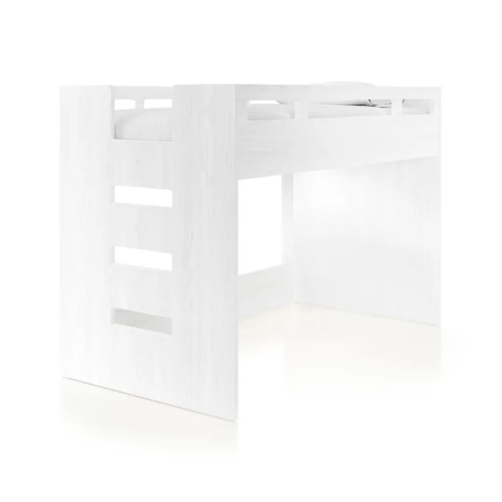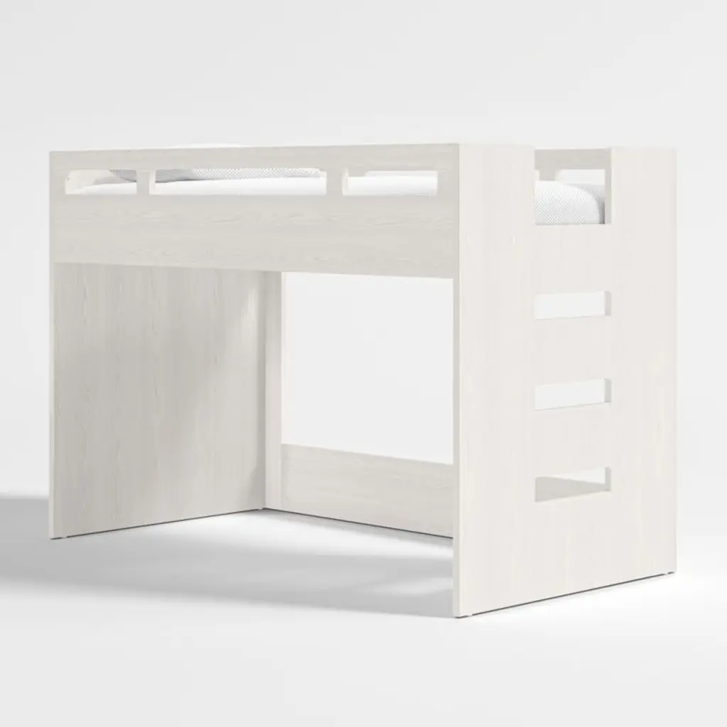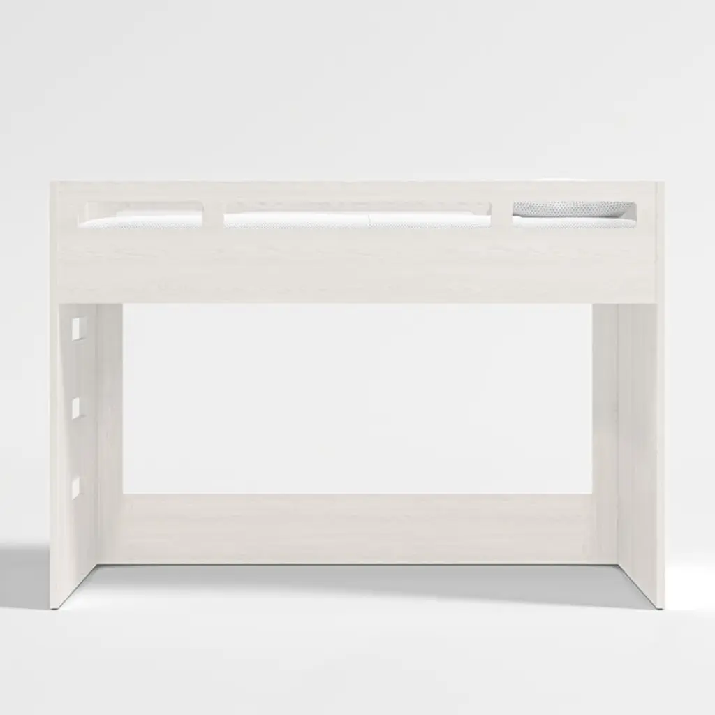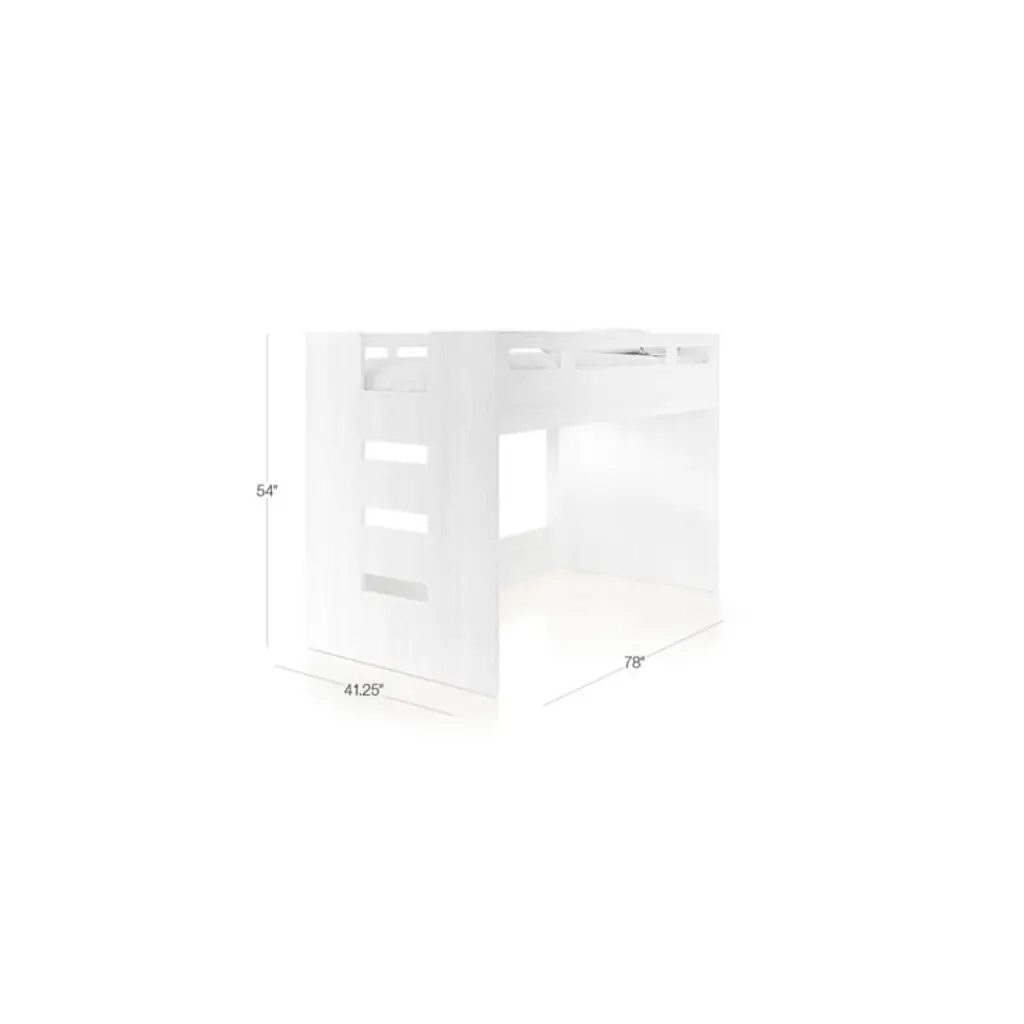 We've created a Loft Bed with more space saving capabilities than ever before. No, we didn't use magic. We just scaled it down a bit. With a smaller profile than a usual loft bed, this loft bed saves you more floor space than ever before. Not only that, the unique incorporated ladder makes it even more compact. Plus, the white glaze finish allows the woods natural grain to show, letting it coordinate with nearly any decor. Pair it with our exclusive Abridged Rolling Twin or Full Bed and create an instant Bunk Bed. Make the most of your small kids' room with space-saving furniture, storage solutions and fun decor that fools the eye.