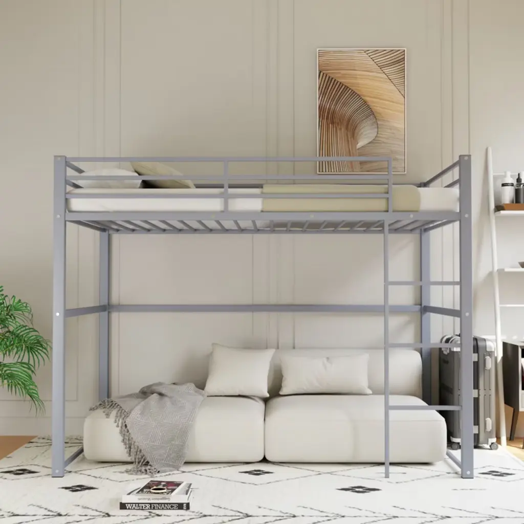 Azl1 Life Concept Beds Metal Loft Room-saving Frame Sturdy And Secure Safety Guard Rails Durability For Kids Room, Gray, 77.36"*41.34"*62.2"