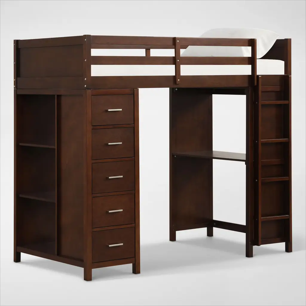 This full size loft bed with storage and desk creates a cozy, elevated sleeping area that leaves plenty of room underneath for a variety of options. It's ideal for storage,work station,a play area,gaming center or a reading nook. It is made of MDF and Pinewood with wooden slats support£¬ you can enjoy restful sleep on this sturdy wooden loft bed. This product will be shipped in two boxes which may not arrive on the same day.