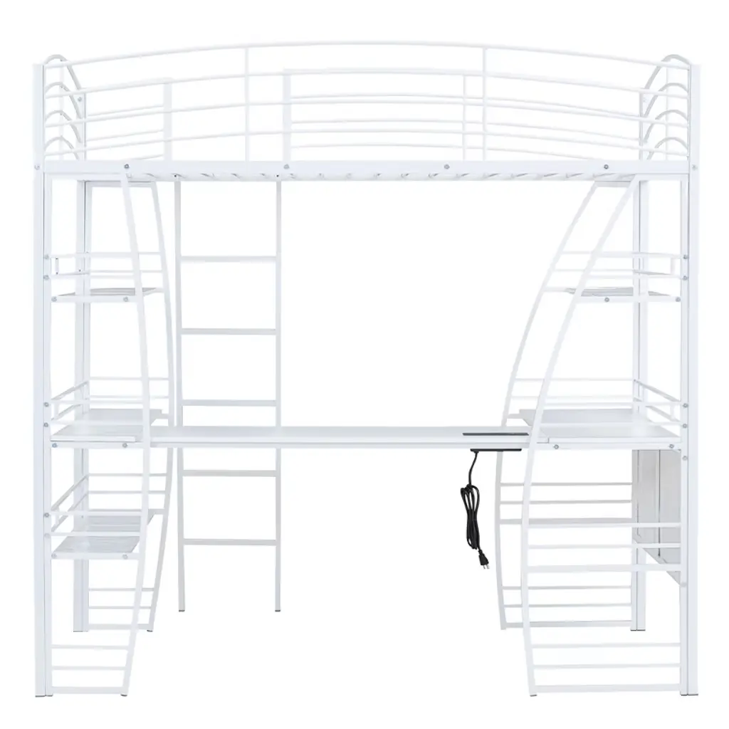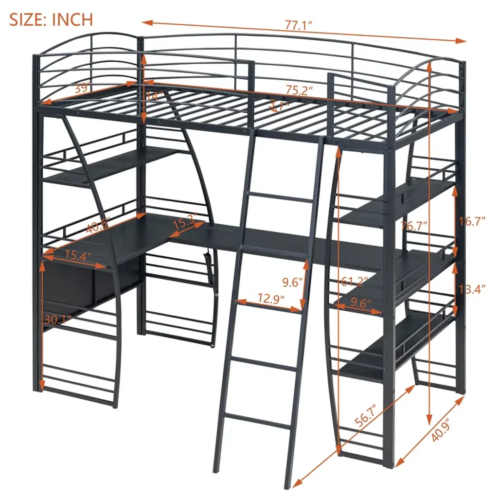 [Loft bed with Desk and Bookcase]The loft bed with desk and bookcase built-in study area with multiples shelves on each side for storage to lay out whatever you want including the lamp, books, toys and so on. And the shelves are just besides the L-shaped desk, it is easy for you to access anything you need.This product will be delivered in two packages. The two packages may not arrive at the same time. Please be patient and wait.