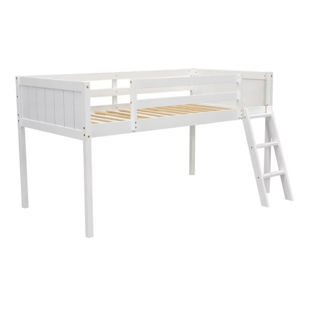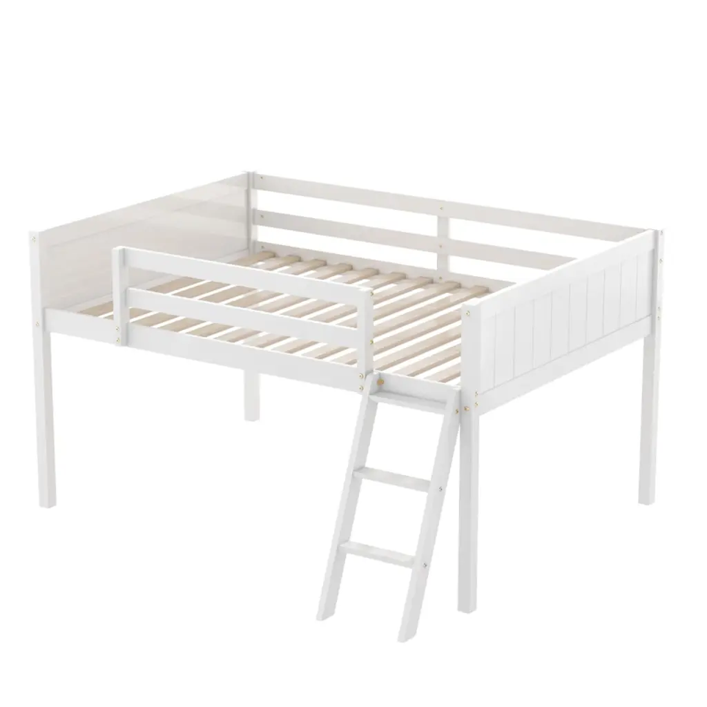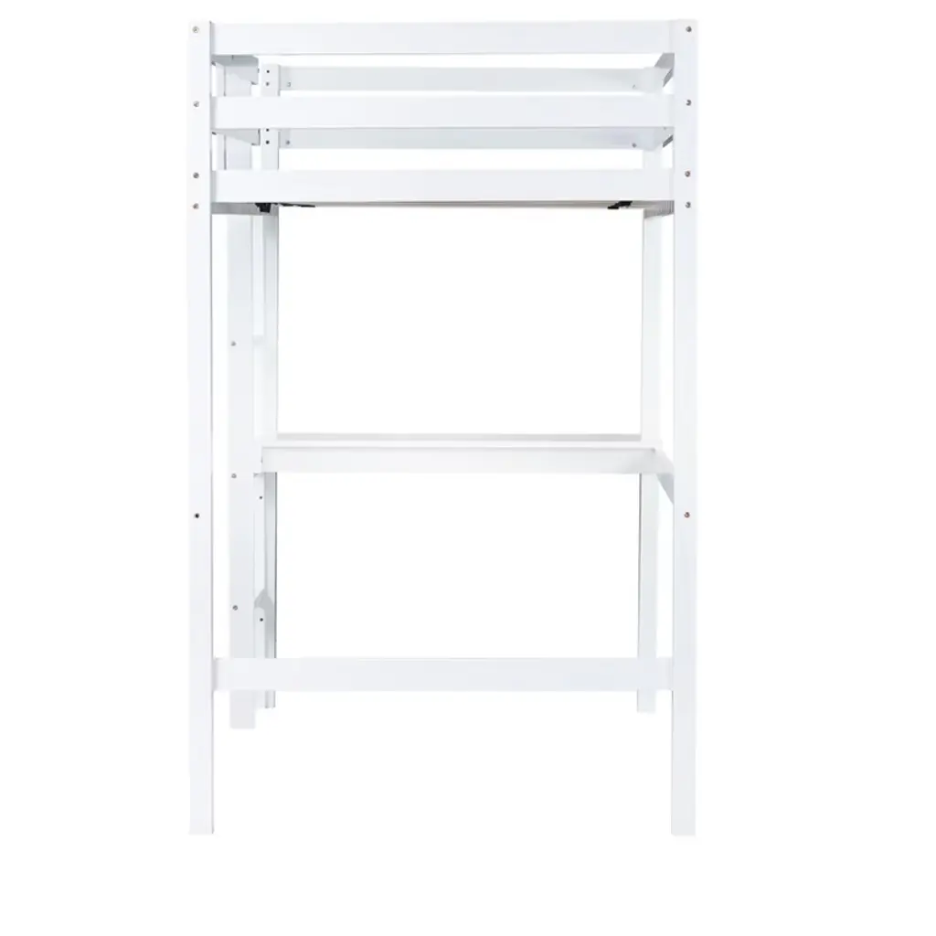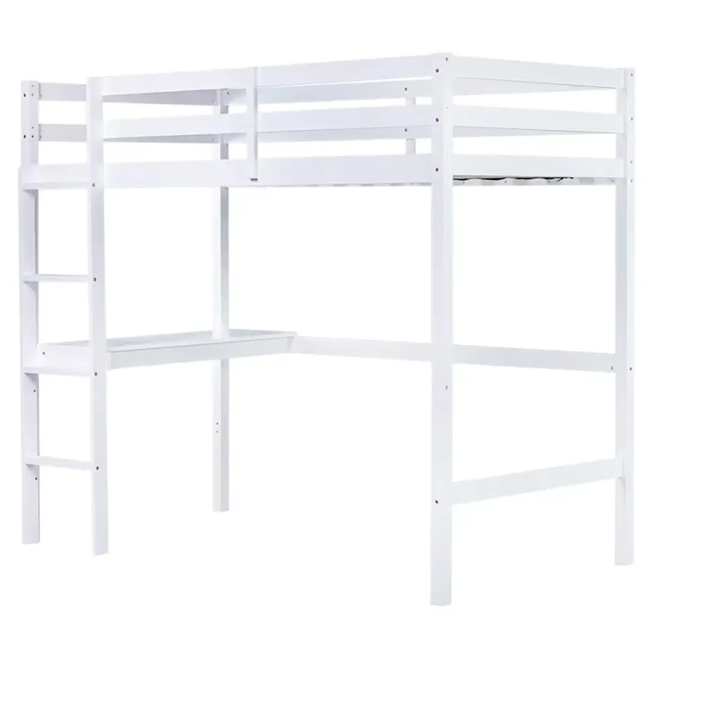 The loft bed combines bedroom and study into a cozy and lovely space, under the upper bunk there is a built-in desk, which make kids to do homework and get books and daily items. The built-in ladder on the upper bed adds plenty fun and exercise to kids when they get up to bed, instantly the exquisite study is turned into a warm sleeping nest.