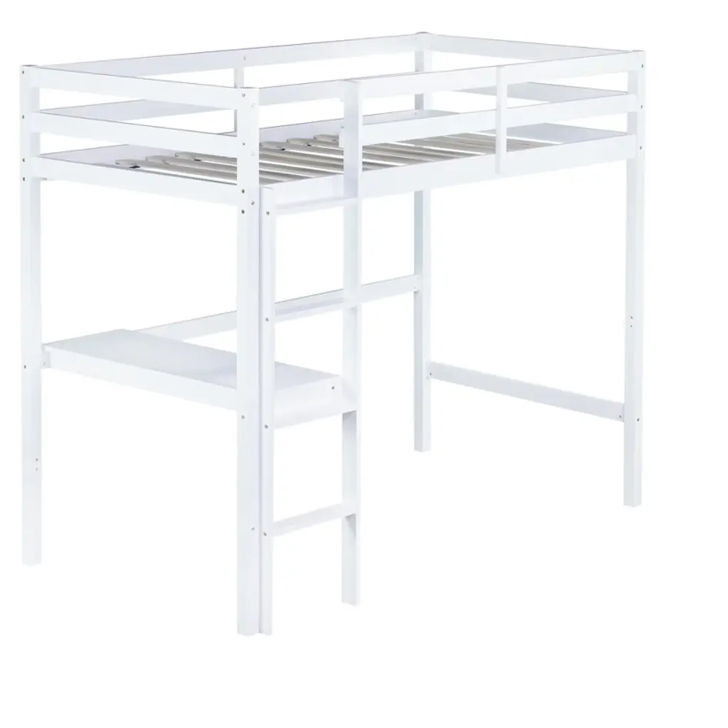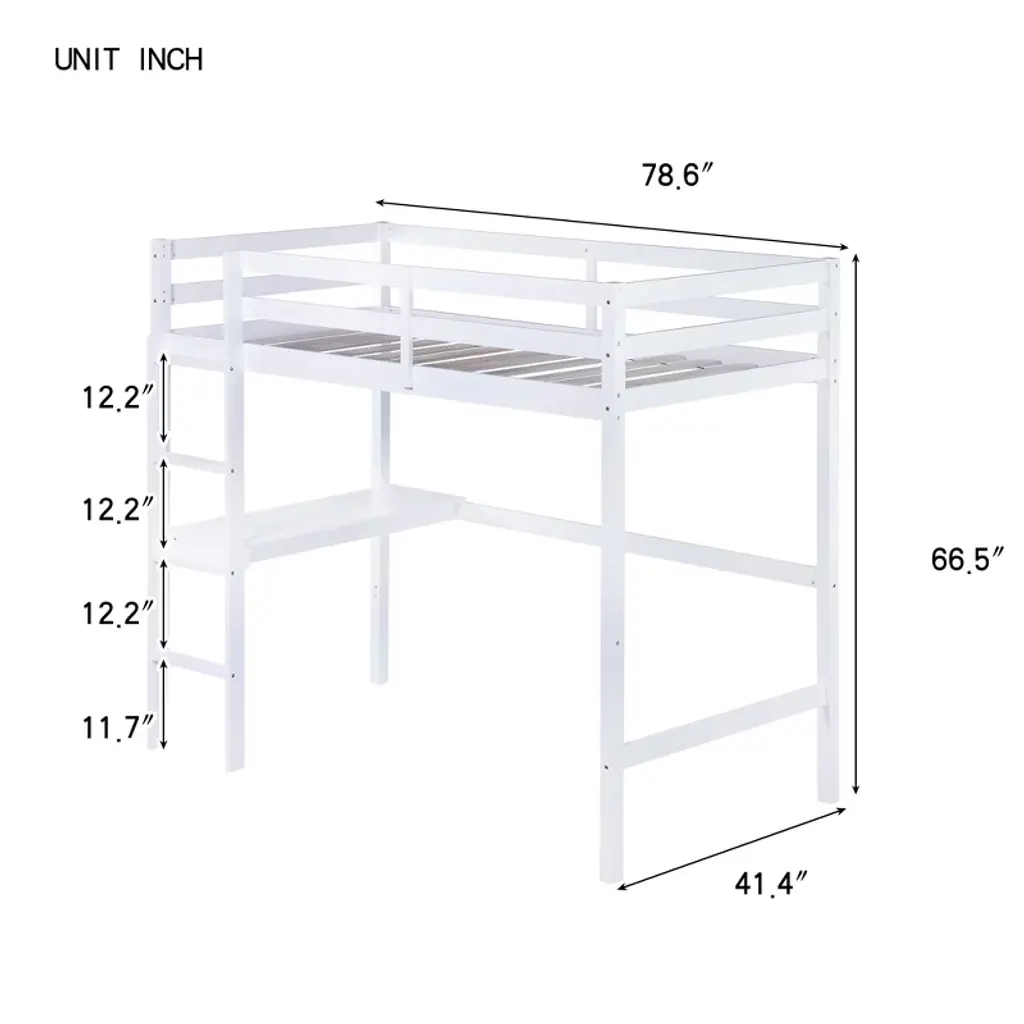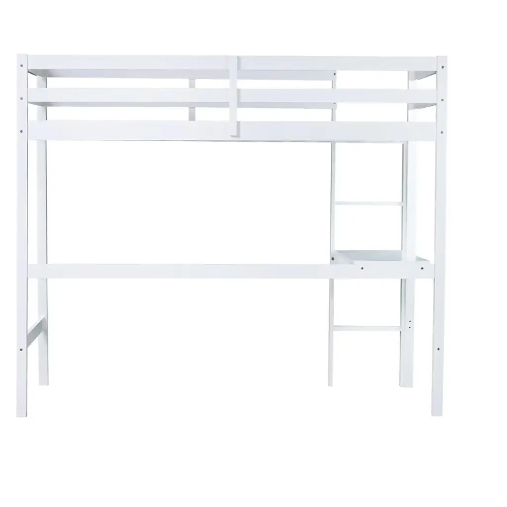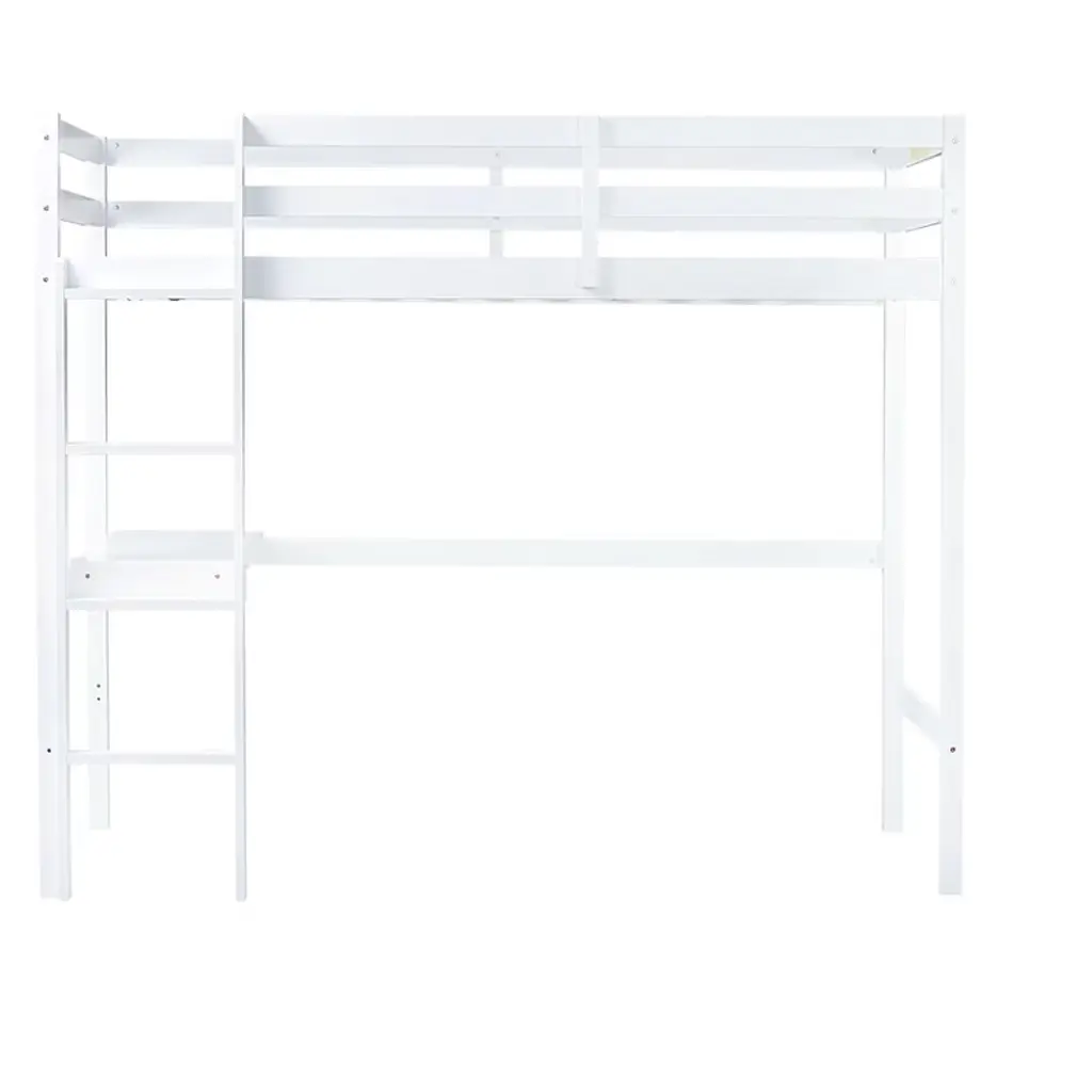 Bellemave Twin Wood Loft Bed With Desk, Modern Twin Loft Bed With Guardrail, Built-in Desk & Ladder, White