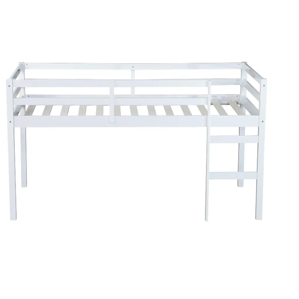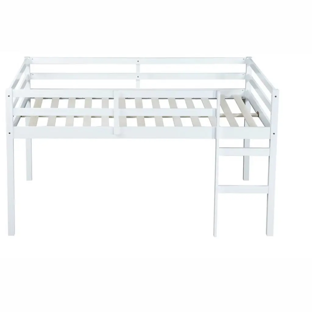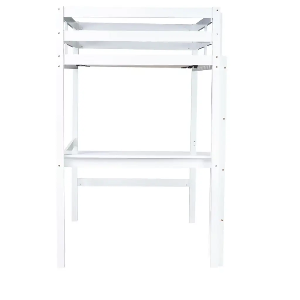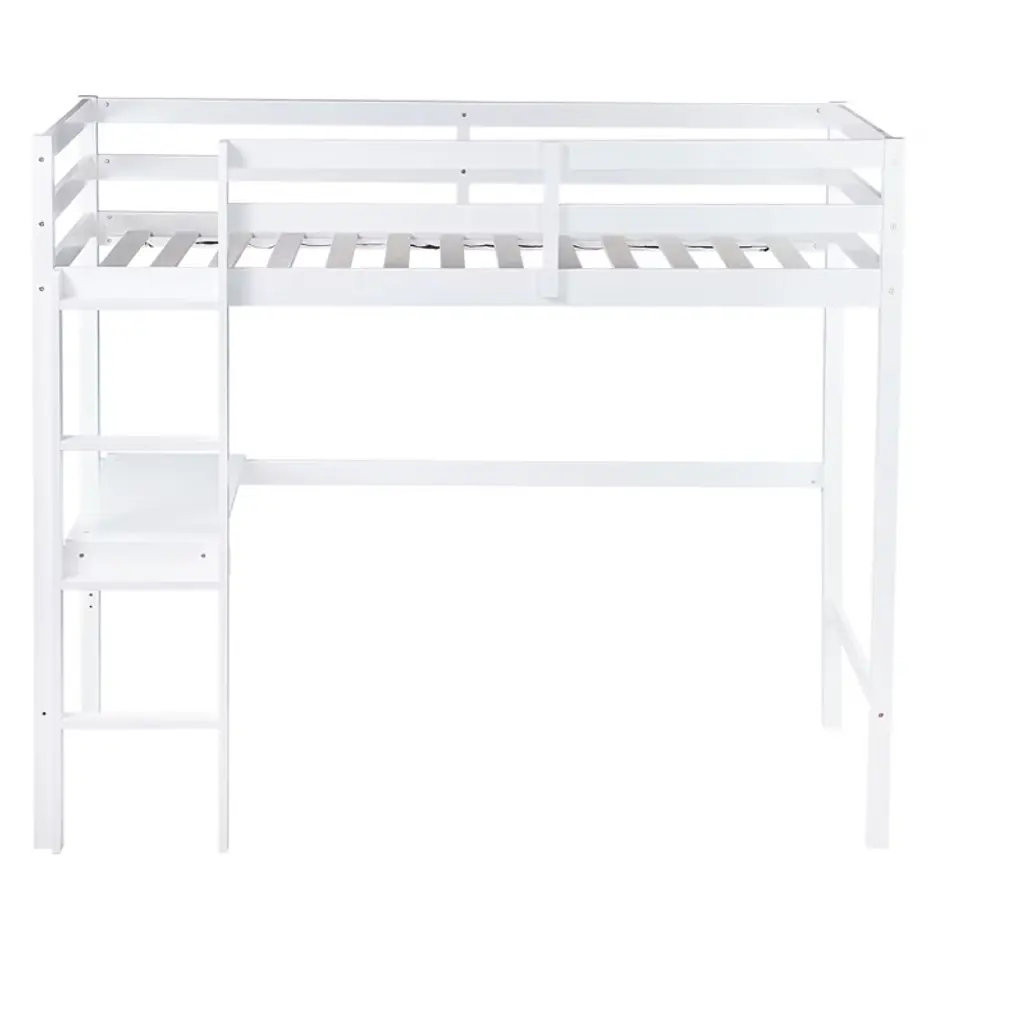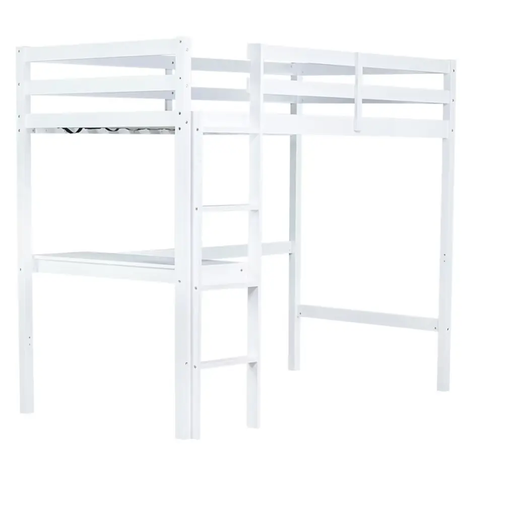 Bellemave Twin Wood Loft Bed With Desk, Modern Twin Loft Bed With Guardrail, Built-in Desk & Ladder, White