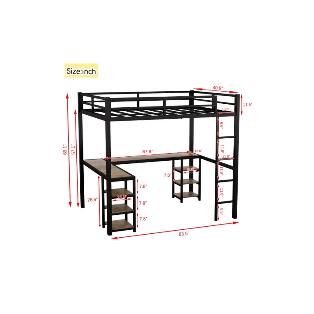 This twin XL loft bed combining MDF with metal, which provides industrial style for your bedroom, suitable for any room style. The loft bed has a spacious underneath space for storage, work or play. Our twin XL loft bed with storage and desk is space-saving and ideal for apartments, dormitories and kid¡¯s rooms. What¡¯s more, a box spring is no need for convenient and economical. This product will be shipped in two boxes which may not arrive on the same day.