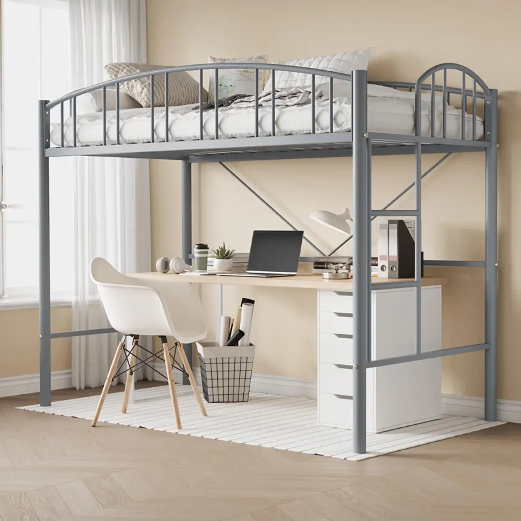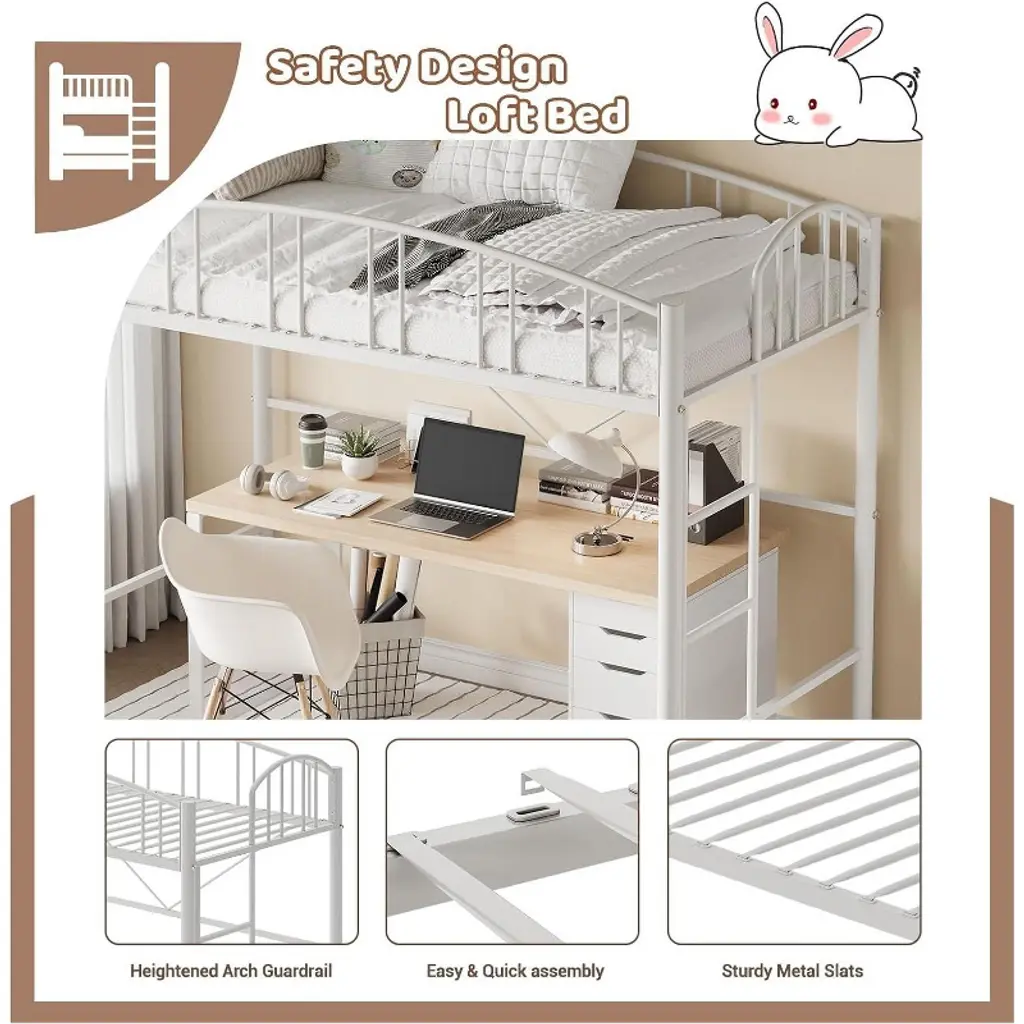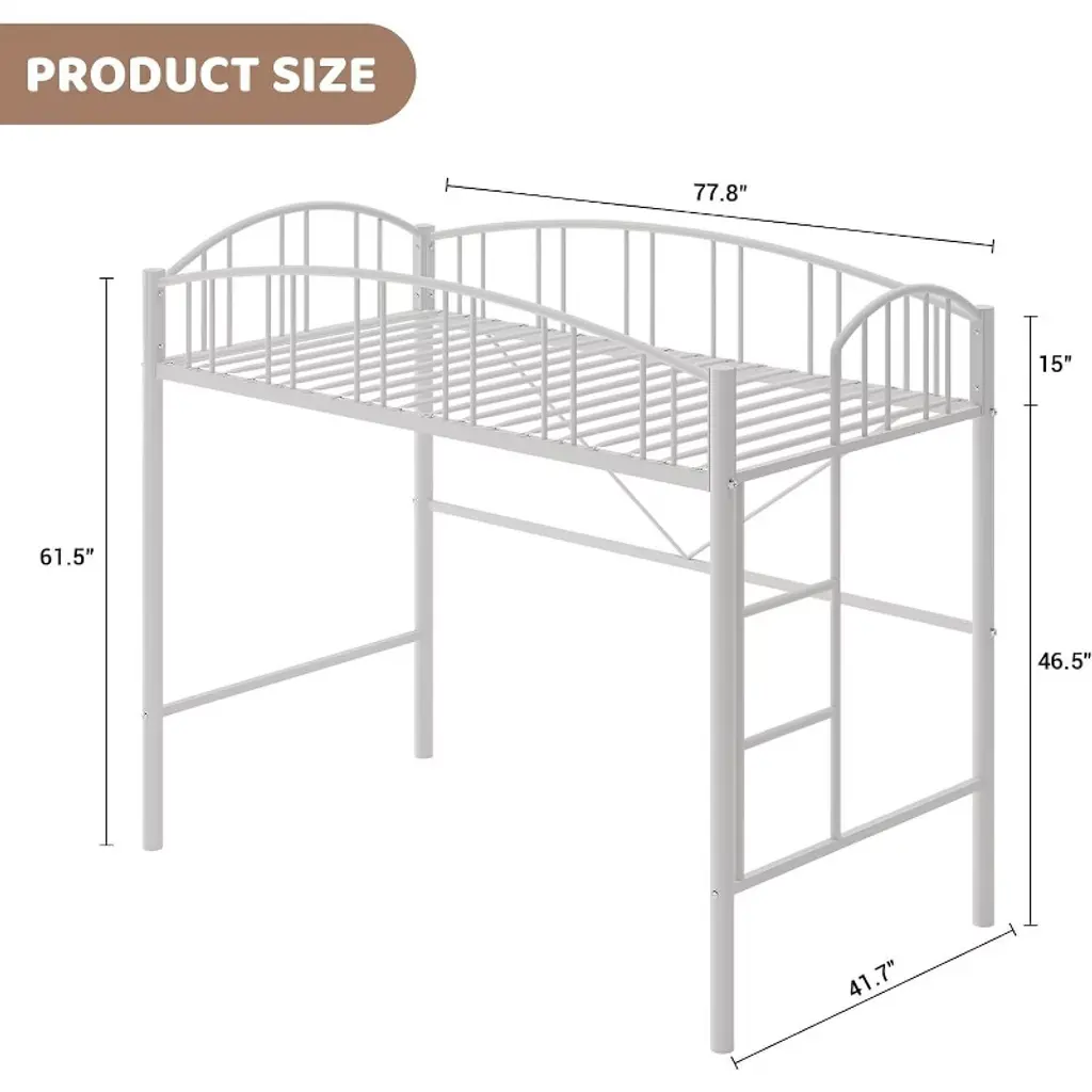 Coucheta Loft Bed Twin Size With Ladde And Arched Guardrail, Heavy Duty Metal For Kids And Adults White