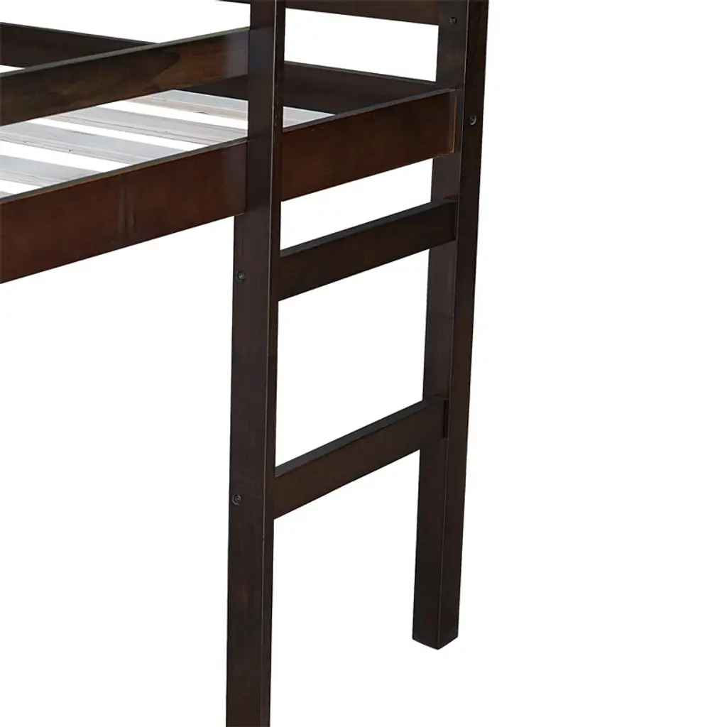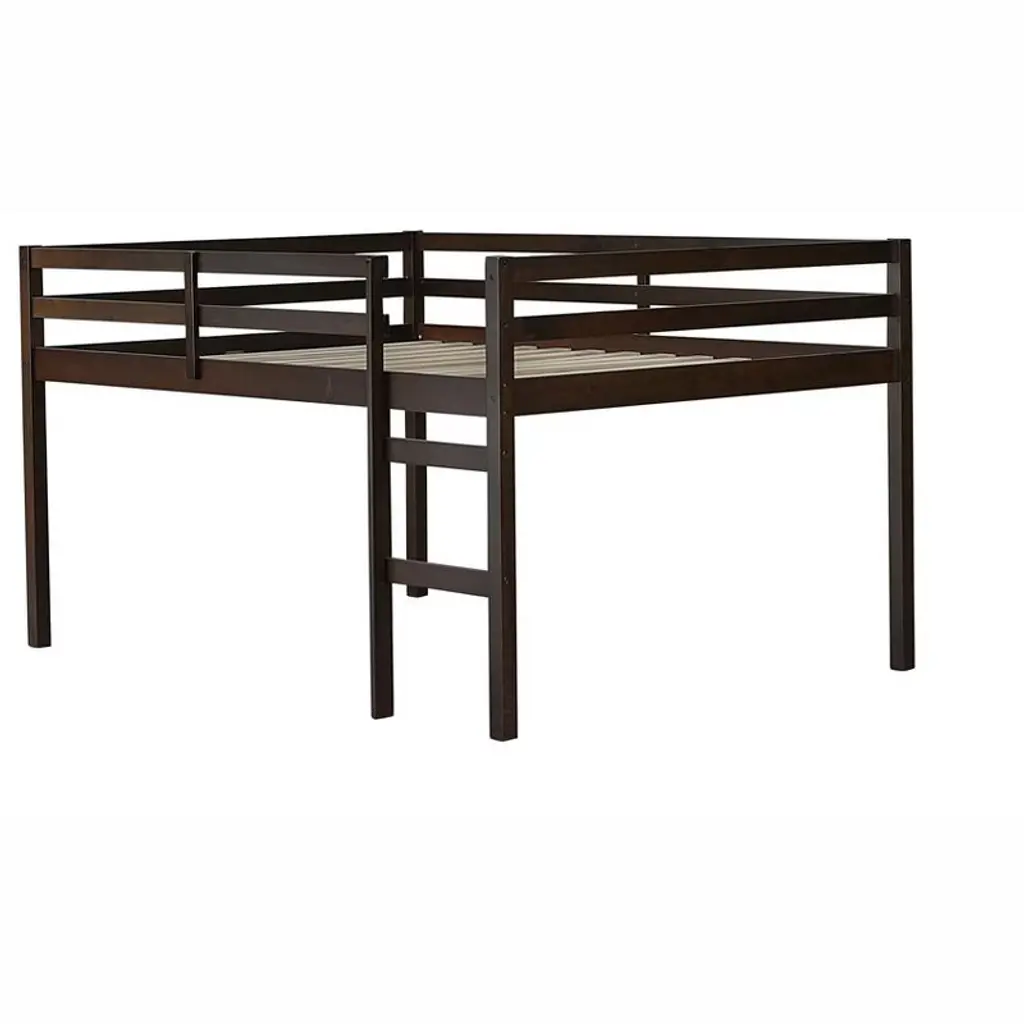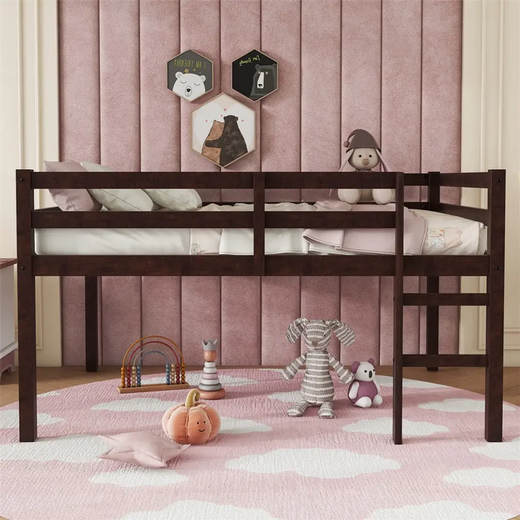 Cowlown Brown Full Rubber Wood Loft Bed With Ladder, Low Height Loft Bed With Storage Space & Safety Guardrails For Kids
