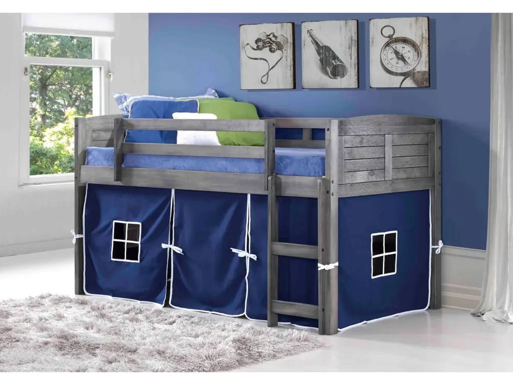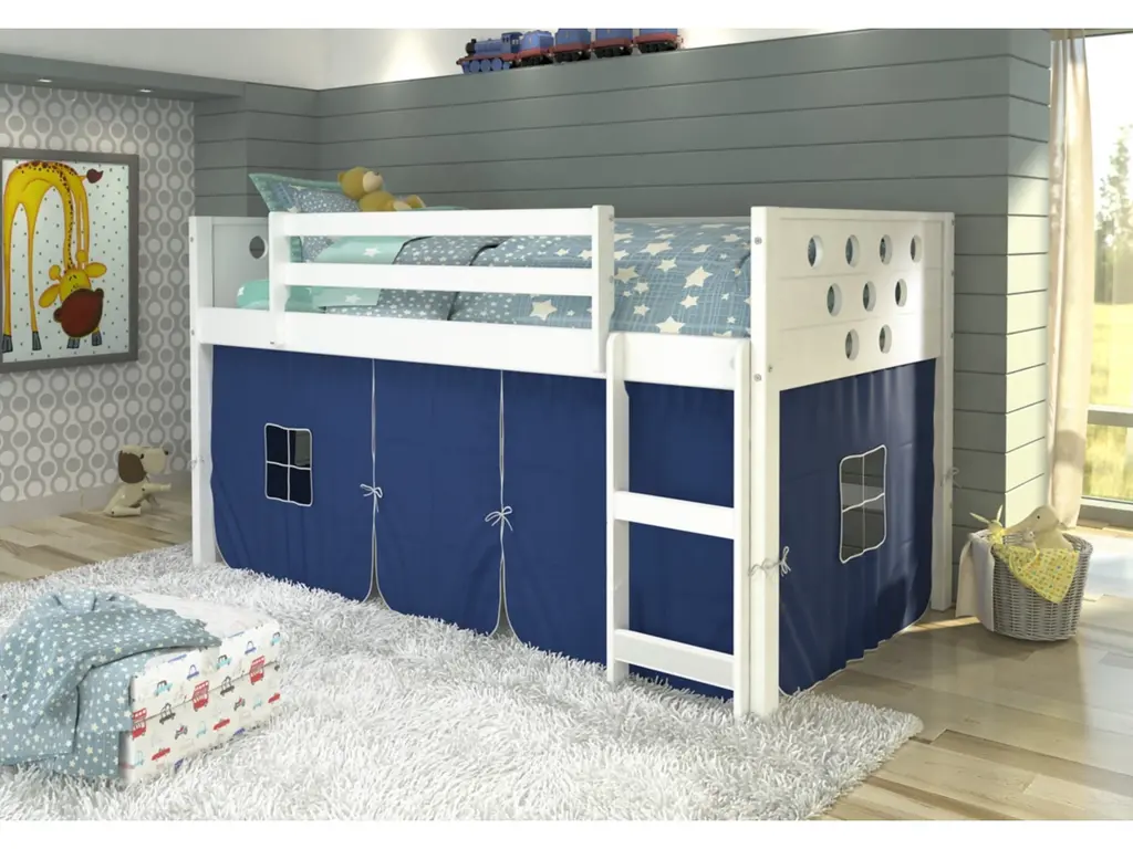 Create the bedroom of their dreams with this twin circles low loft tent bed with slide. Quality crafted with pine wood for sturdy construction made for years of enjoyment, this loft tent bed offers space-saving convenience, with an open space under the bed that's great for "camping in," play time, toy storage and more.
