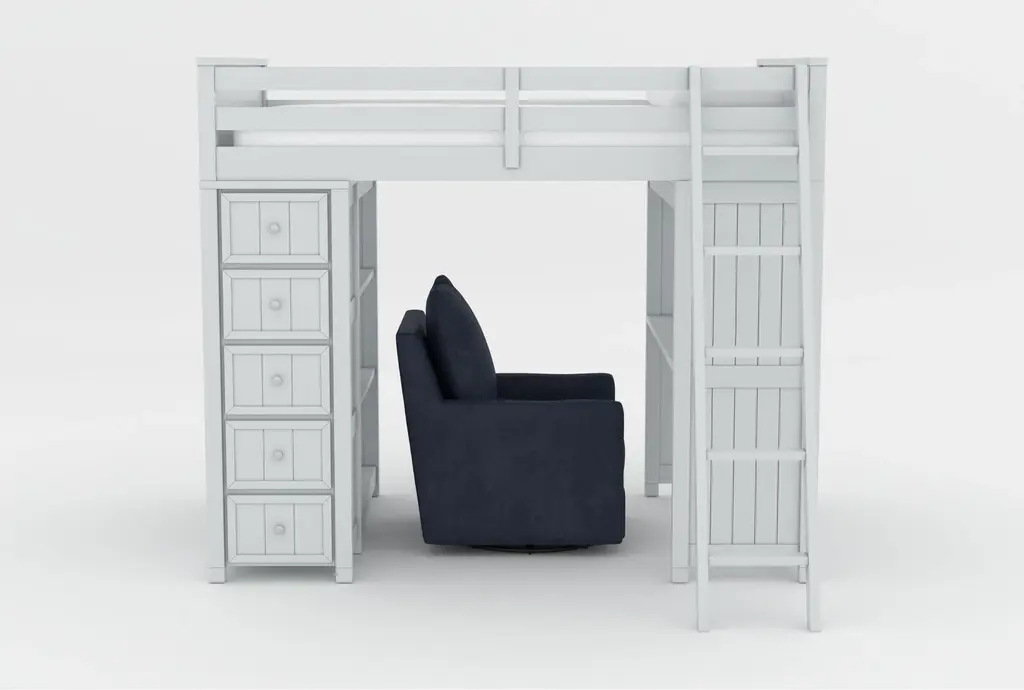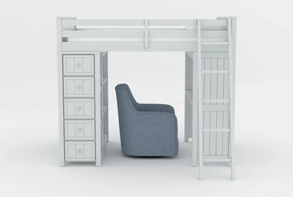 Ever Simple White Wood Kids Loft Bed With Left Ladder