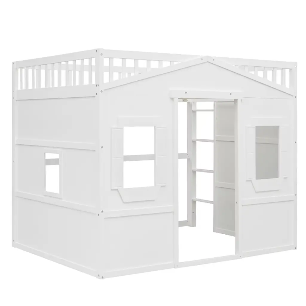 Full Size House Loft Bed With Ladder For Bedroom