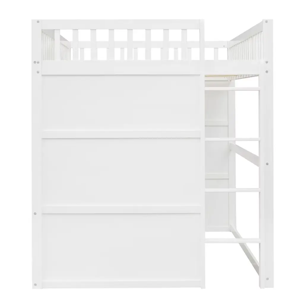 Product Features Elegant design – This Wood Full Size Loft Bed with Ladder is designed with a clean silhouette and a hue of elegance. It gives any room a spark of style that's both modern and timeless.Solid Construction – The bed structure is crafted from high-quality solid pine wood, solid pine legs and a strong, durable frame so that the bed is sturdy and durable.Stability – 13 evenly spaced and solid wood slats blend naturally into the already sturdy frame to give added ground-up support that provides stability. The loft bed features guard rails for added safety, and is accessible via the sturdy, slanted ladder. Enjoy many long years of relaxation and family fun, secure in this meticulously designed wood platform bed.Health and Comfort – No box spring required, and without needing a foundation. The simple yet elegant wood frame is sturdy and comes with slats for extra support and ensures air moves freely around your mattress to keep it fresh for years to come.Dimensions: Overall Product Dimension: 77.5" x 57.8" x 65" (L x W x H). Mattress not included. Some assembly is required, although we have provided clear instructions and tools. Description This Full Size Loft Bed with Ladder is a stylish bed frame that works well with a variety of decorating styles and makes it easy for you to enhance and improve your space. Featuring strong, solid pine wood and many supporting slats, this bed is built to last, ensuring it will accompany you for many years. The beautiful finish lends an elegant look makes this bed frame an excellent addition to any bedroom, do not miss the chance take it home today. Weight & Dimensions Overall Product Dimension: 77.5"L x 57.8"W x 65"HDetail Product Dimension: Please refer to the Size imageNumber of Package: 1Package Dimension: Please refer to the SpecificationOverall Product Weight: 144.74LBSPackage Weight: Please refer to the SpecificationWeight Capacity: 400LBSRecommended Mattress Thickness: 6"Recommended Age: £¾ 6 years old Specifications Product Type: Loft BedSize: FullMaterial: Plywood + MDF + PinewoodBox Spring Required: NoAssembly Required: YesNotes: Manual measurement has been used, there may be some reasonable error. All the pictures are taken by actual samples, slight chromatic aberration may occur due to lighting or display.